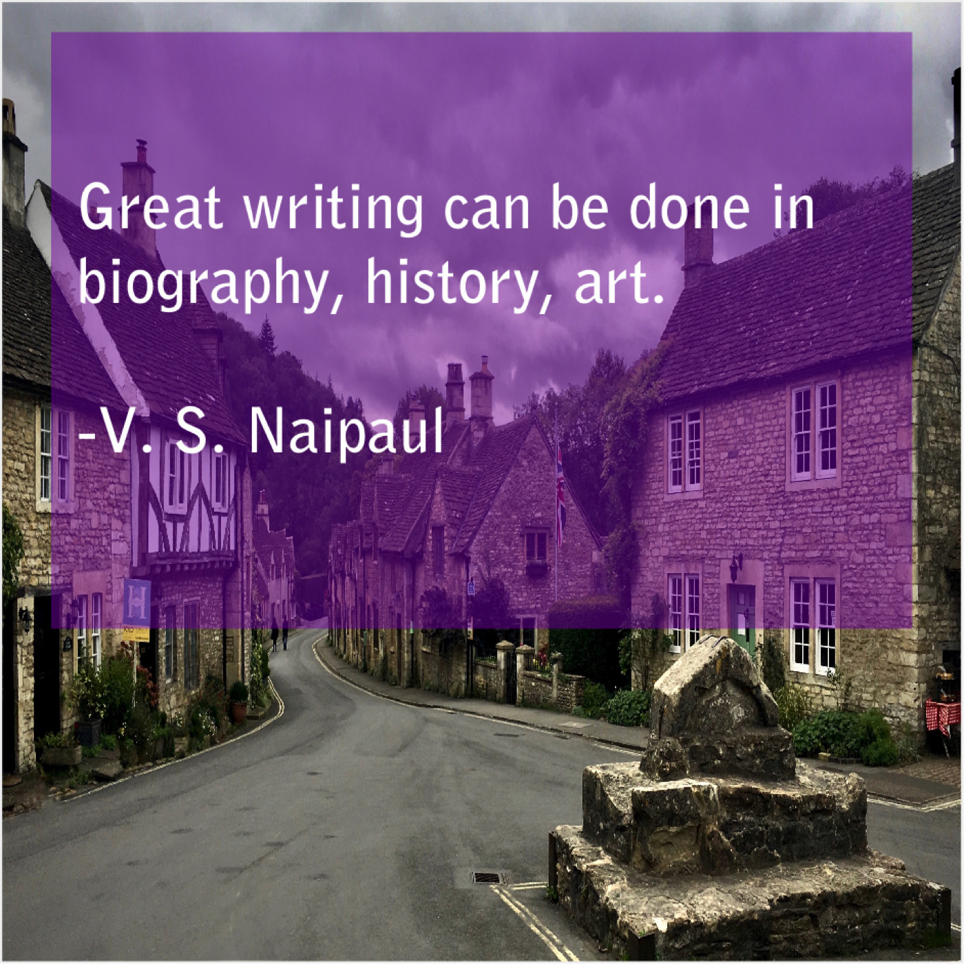 V. S. Naipaul V. S. Naipaul – Great writing can be done… August 8, 2019 admin “Great writing can be done in biography, history, art.”-V. S. Naipaul