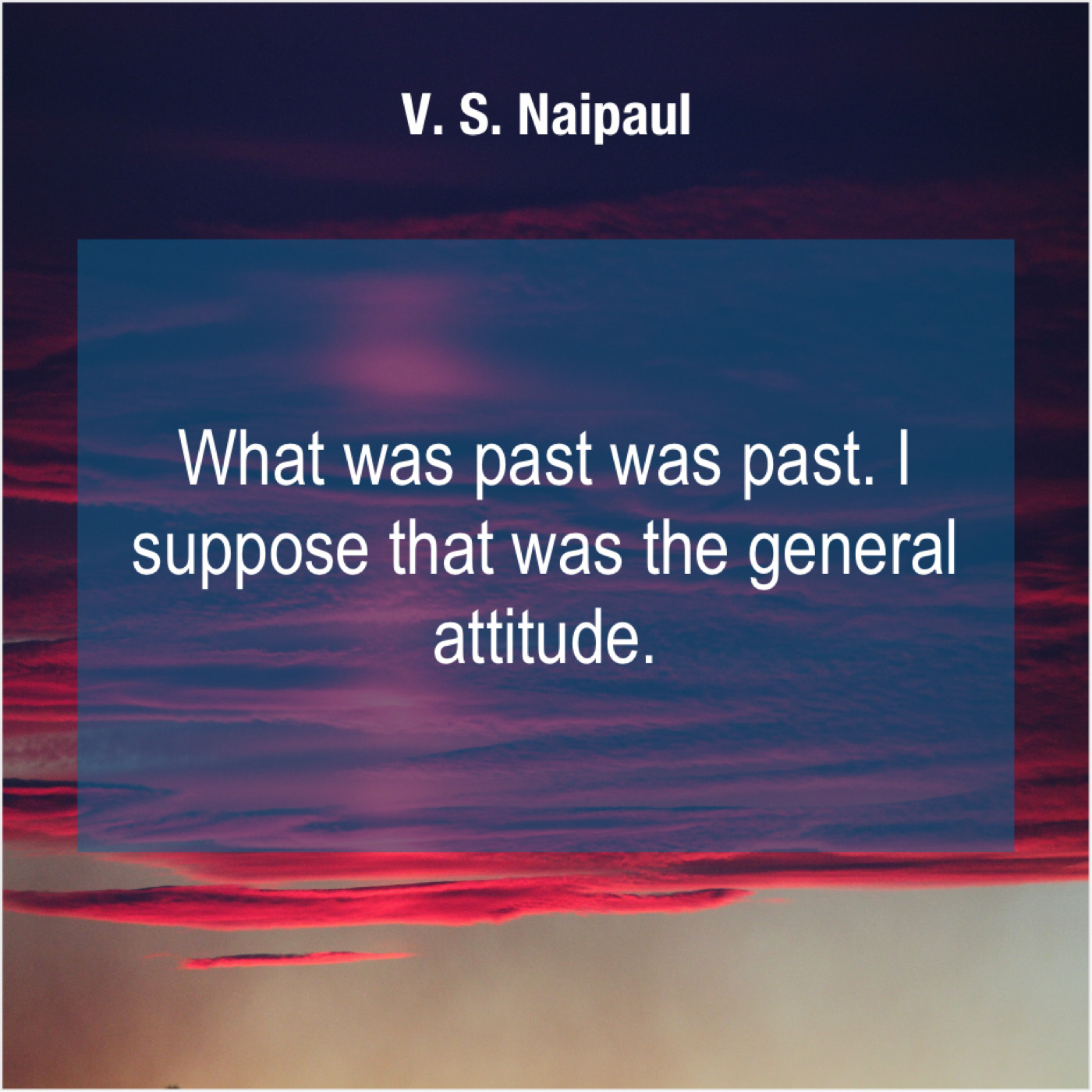 V. S. Naipaul V. S. Naipaul – What was past was past… April 7, 2019 admin “What was past was past. I suppose that was the general attitude.”-V. S. Naipaul