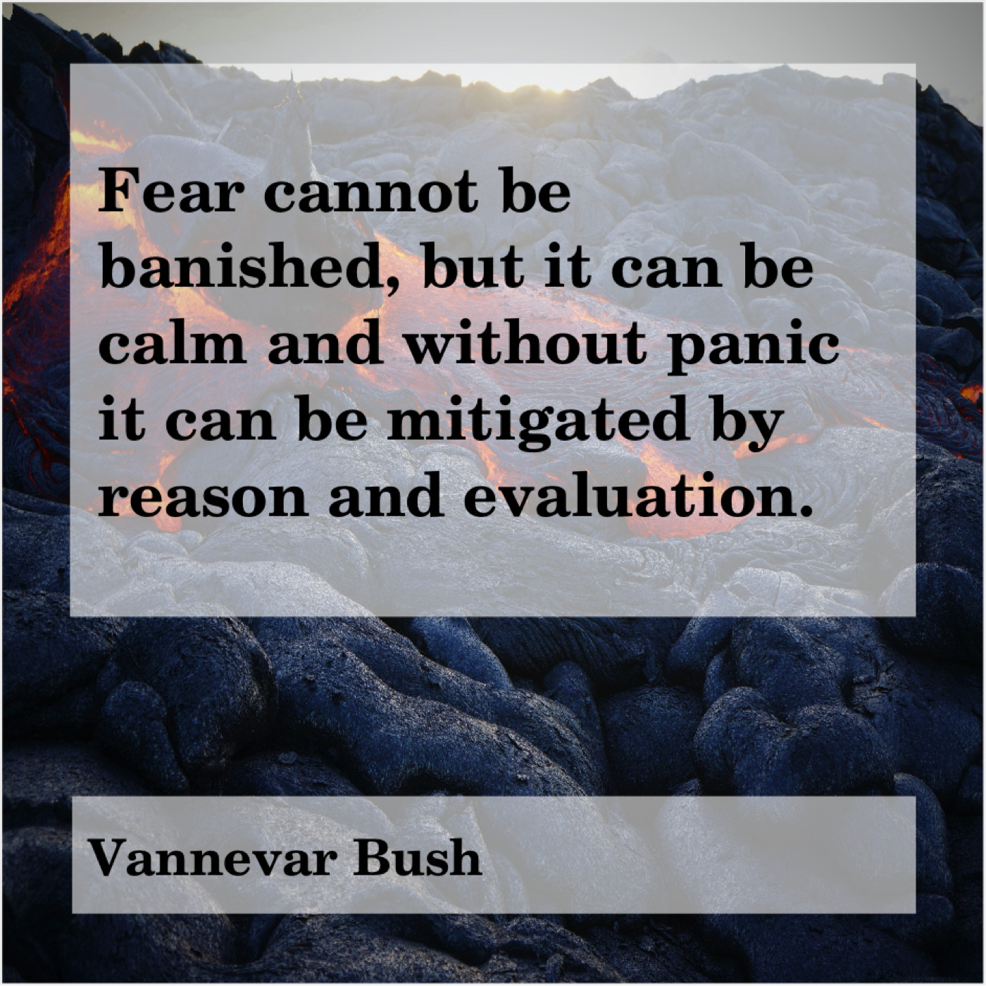 Vannevar Bush Vannevar Bush – Fear cannot be banished, but… July 10, 2019 admin “Fear cannot be banished, but it can be calm and without panic it can be mitigated by reason and evaluation.”-Vannevar Bush