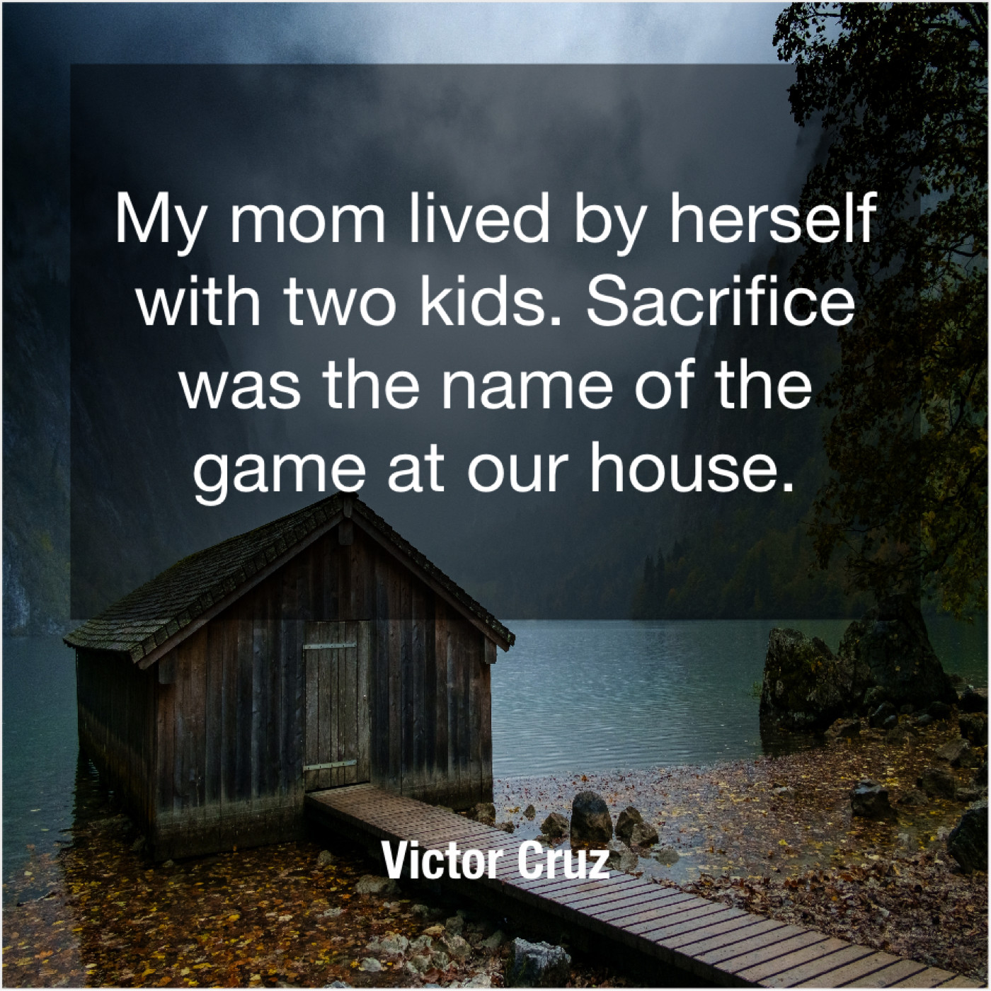 Victor Cruz Victor Cruz – My mom lived by herself… June 13, 2019 admin “My mom lived by herself with two kids. Sacrifice was the name of the game at our house.”-Victor Cruz