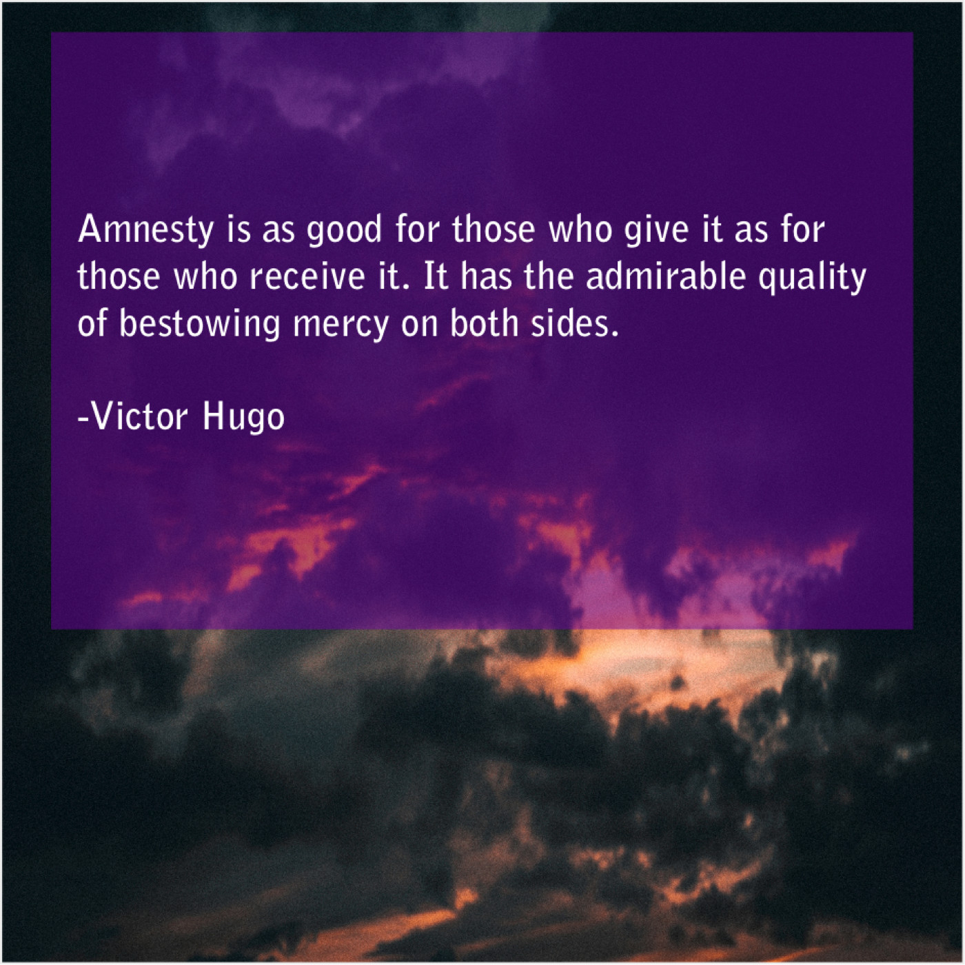 “Amnesty is as good for those who give it as for those who receive it. It has the admirable quality of bestowing mercy on both sides.”