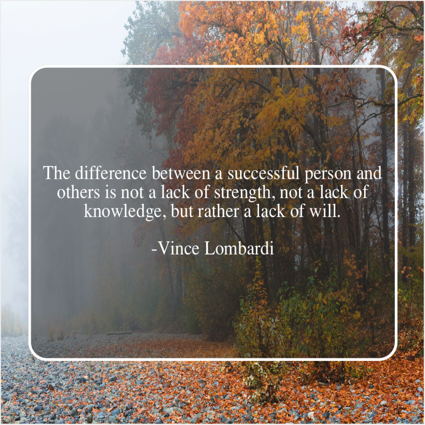 Vince Lombardi Vince Lombardi – The difference between a successful… May 23, 2019 admin “The difference between a successful person and others is not a lack of strength, not a lack of knowledge, but rather a lack of will.”-Vince Lombardi