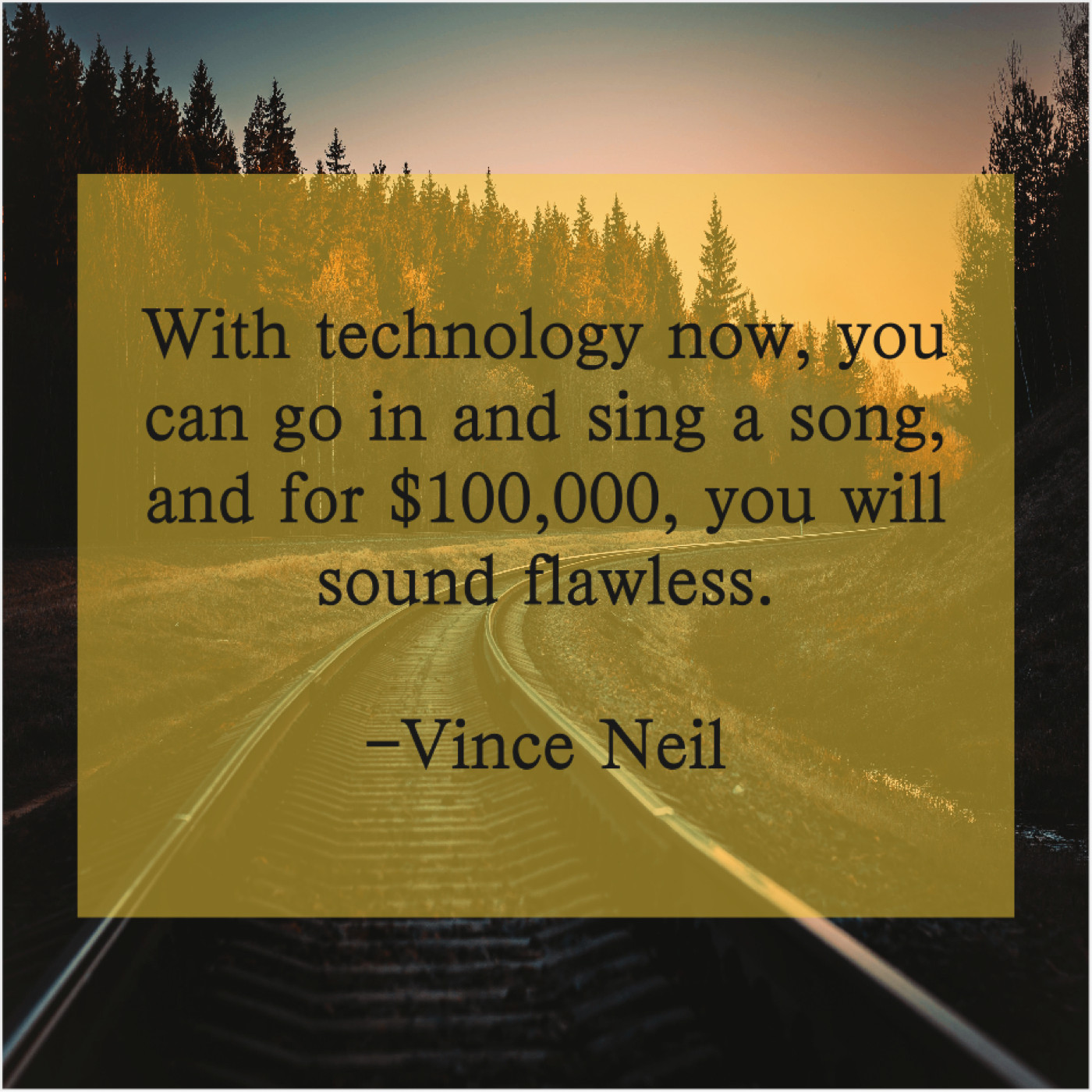 Vince Neil Vince Neil – With technology now, you can… October 10, 2019 admin “With technology now, you can go in and sing a song, and for $100,000, you will sound flawless.”-Vince Neil