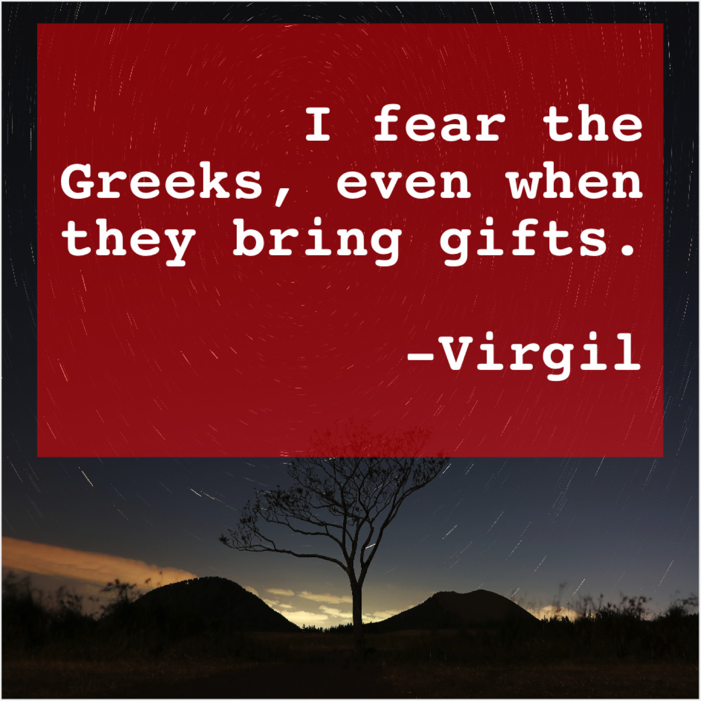 Virgil Virgil – I fear the Greeks, even… April 18, 2019 admin “I fear the Greeks, even when they bring gifts.”-Virgil