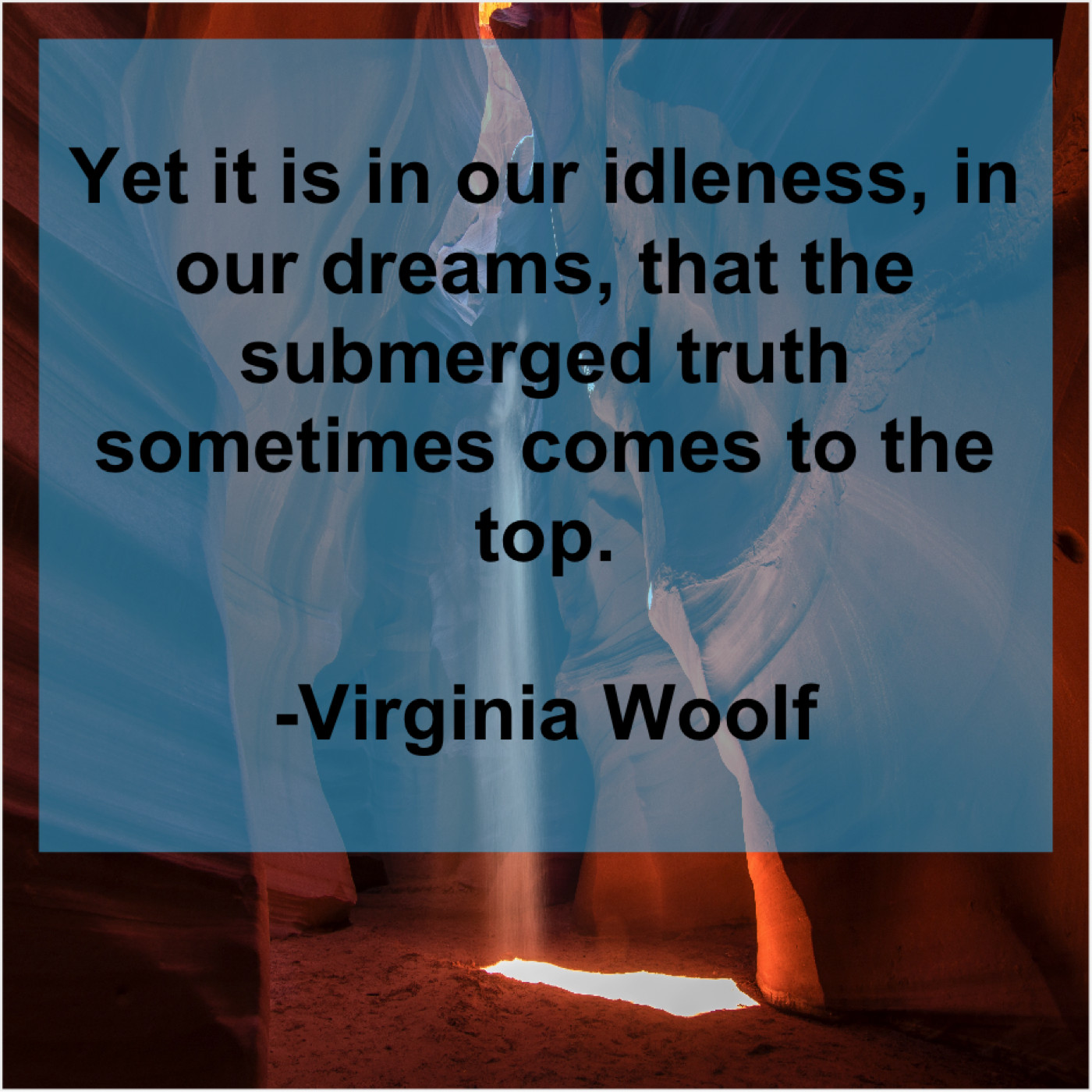 Virginia Woolf Virginia Woolf – Yet it is in our… May 21, 2019 admin “Yet it is in our idleness, in our dreams, that the submerged truth sometimes comes to the top.”-Virginia Woolf
