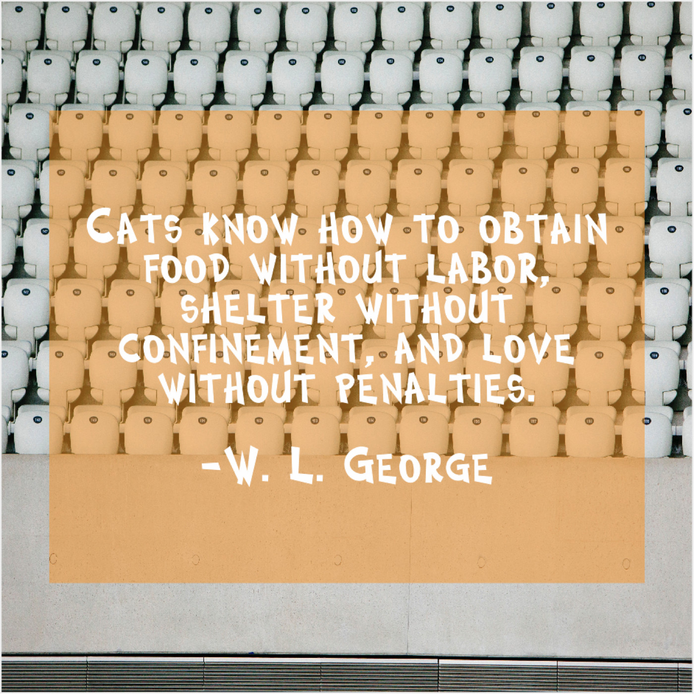 W. L. George W. L. George – Cats know how to obtain… August 15, 2019 admin “Cats know how to obtain food without labor, shelter without confinement, and love without penalties.”-W. L. George
