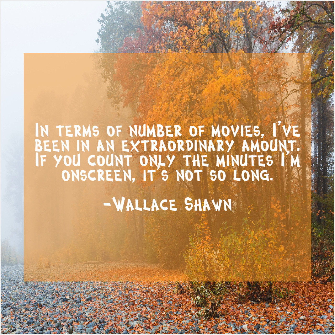 Wallace Shawn Wallace Shawn – In terms of number of… September 16, 2019 admin “In terms of number of movies, I’ve been in an extraordinary amount. If you count only the minutes I’m onscreen, it’s not so long.”-Wallace Shawn