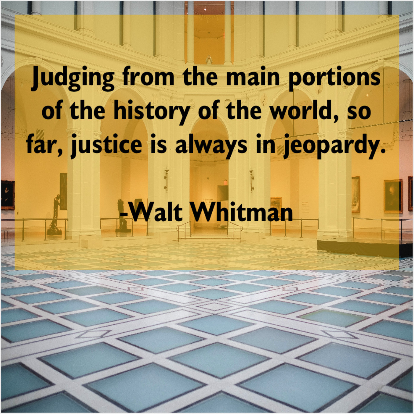 Walt Whitman Walt Whitman – Judging from the main portions… October 19, 2019 admin “Judging from the main portions of the history of the world, so far, justice is always in jeopardy.”-Walt Whitman