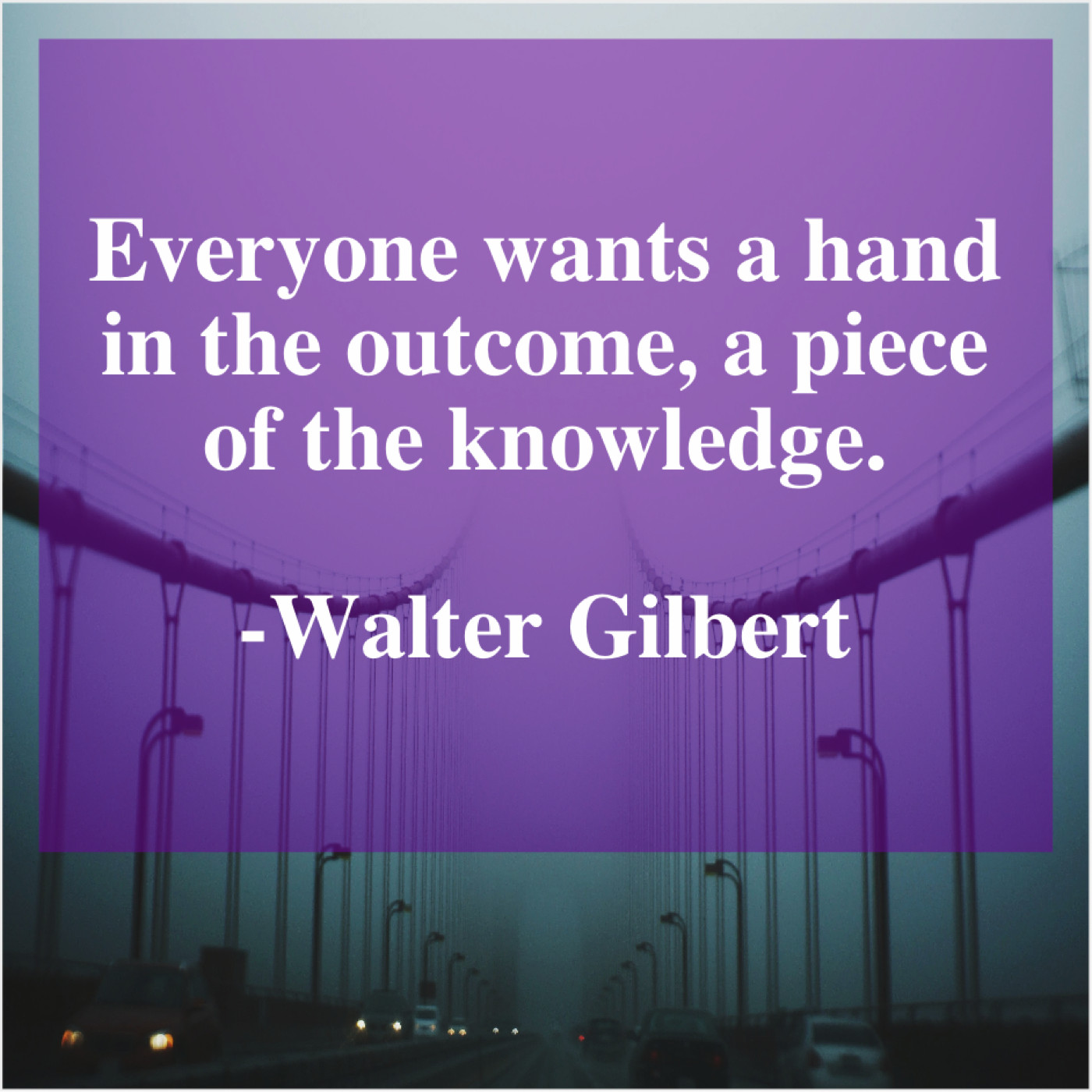 Walter Gilbert Walter Gilbert – Everyone wants a hand in… May 19, 2019 admin “Everyone wants a hand in the outcome, a piece of the knowledge.”-Walter Gilbert