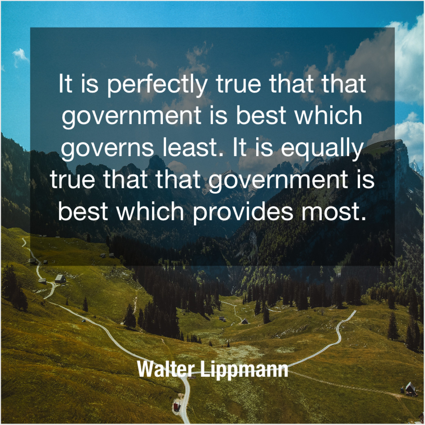 Walter Lippmann Walter Lippmann – It is perfectly true that… February 10, 2019 admin “It is perfectly true that that government is best which governs least. It is equally true that that government is best which provides most.”-Walter Lippmann