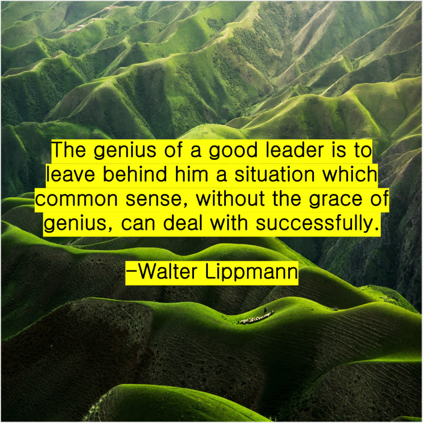 Walter Lippmann Walter Lippmann – The genius of a good… November 8, 2018 admin “The genius of a good leader is to leave behind him a situation which common sense, without the grace of genius, can deal with successfully.”-Walter Lippmann