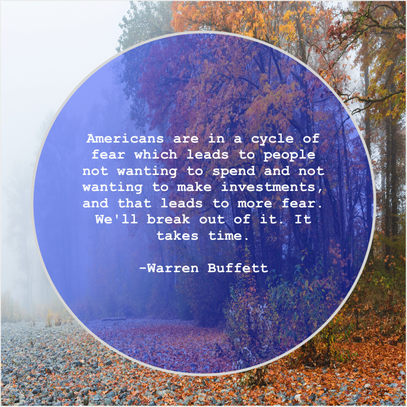 Warren Buffett Warren Buffett – Americans are in a cycle… July 31, 2019 admin “Americans are in a cycle of fear which leads to people not wanting to spend and not wanting to make investments, and that leads to more fear. We’ll break out of it. It takes time.”-Warren Buffett