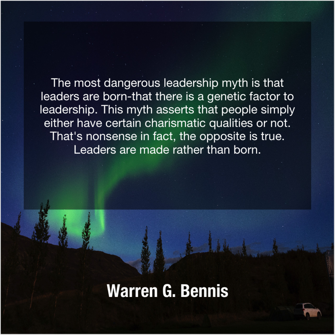 “The most dangerous leadership myth is that leaders are born-that there is a genetic factor to leadership. This myth asserts that people simply either have certain charismatic qualities or not. That’s nonsense in fact, the opposite is true. Leaders are made rather than born.”