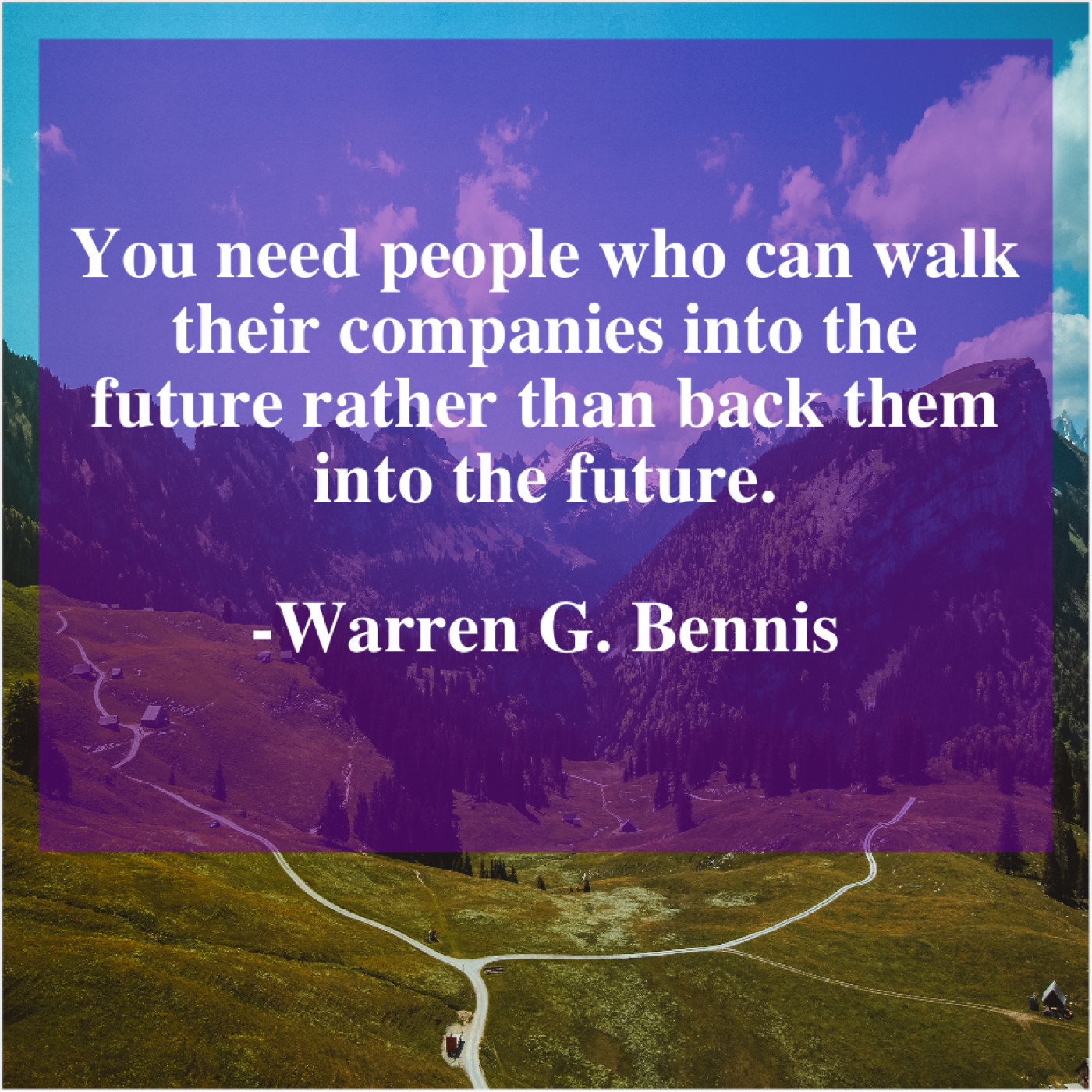 Warren G. Bennis Warren G. Bennis – You need people who can… October 16, 2019 admin “You need people who can walk their companies into the future rather than back them into the future.”-Warren G. Bennis