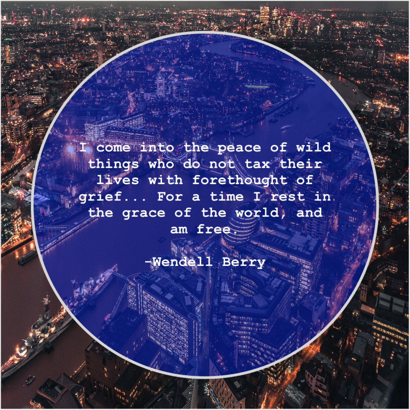 Wendell Berry Wendell Berry – I come into the peace… February 26, 2019 admin “I come into the peace of wild things who do not tax their lives with forethought of grief… For a time I rest in the grace of the world, and am free.”-Wendell Berry