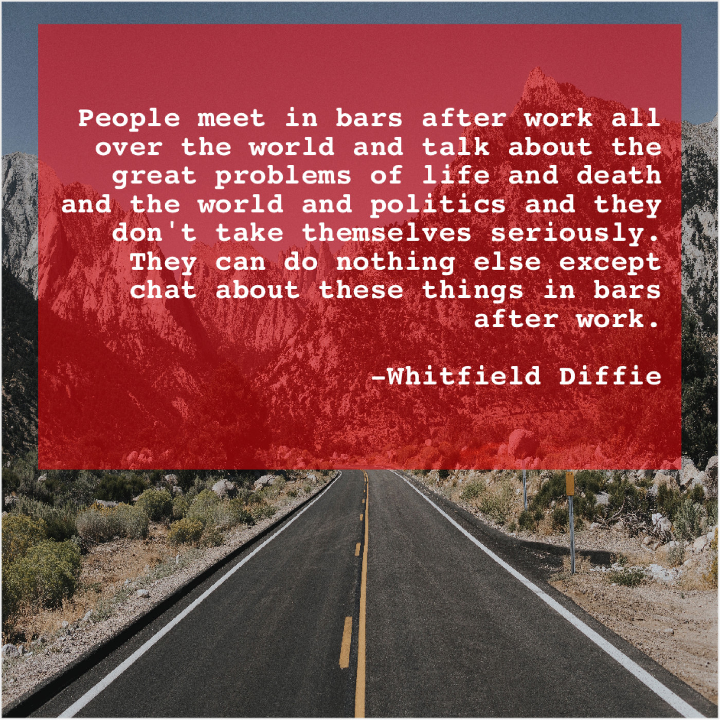 “People meet in bars after work all over the world and talk about the great problems of life and death and the world and politics and they don’t take themselves seriously. They can do nothing else except chat about these things in bars after work.”