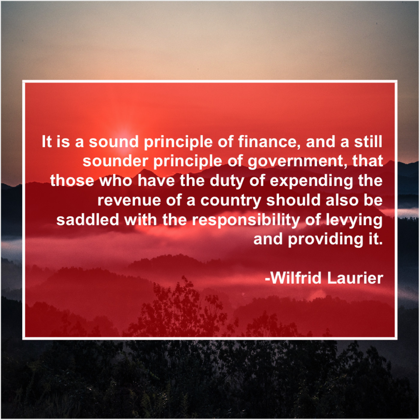 Wilfrid Laurier Wilfrid Laurier – It is a sound principle… September 27, 2019 admin “It is a sound principle of finance, and a still sounder principle of government, that those who have the duty of expending the revenue of a country should also be saddled with the responsibility of levying and providing it.”-Wilfrid Laurier