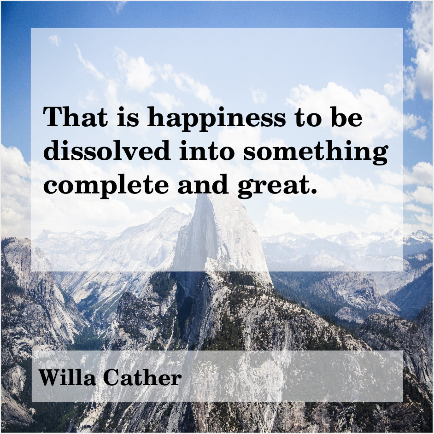 Willa Cather Willa Cather – That is happiness to be… August 13, 2019 admin “That is happiness to be dissolved into something complete and great.”-Willa Cather