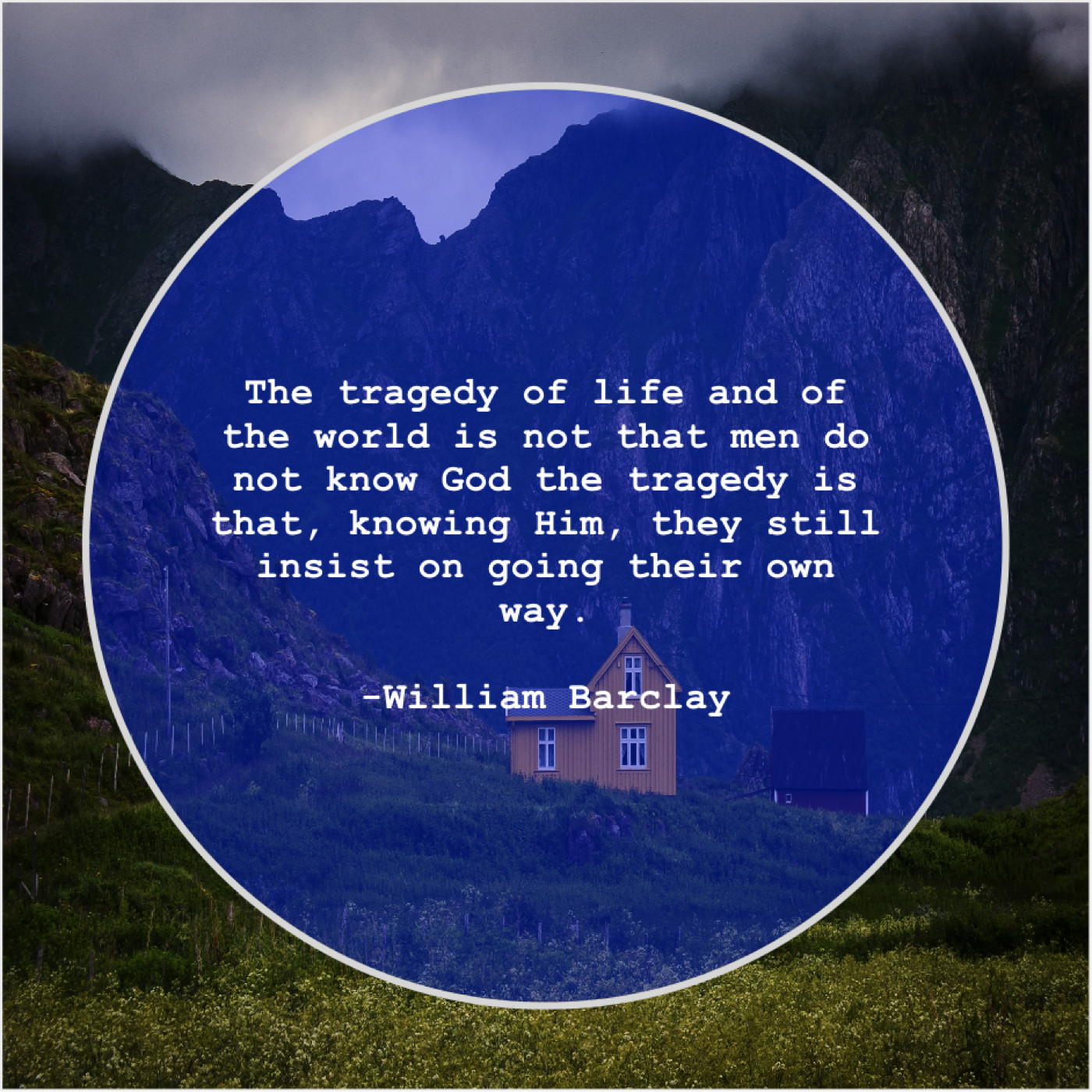 William Barclay William Barclay – The tragedy of life and… July 30, 2019 admin “The tragedy of life and of the world is not that men do not know God the tragedy is that, knowing Him, they still insist on going their own way.”-William Barclay