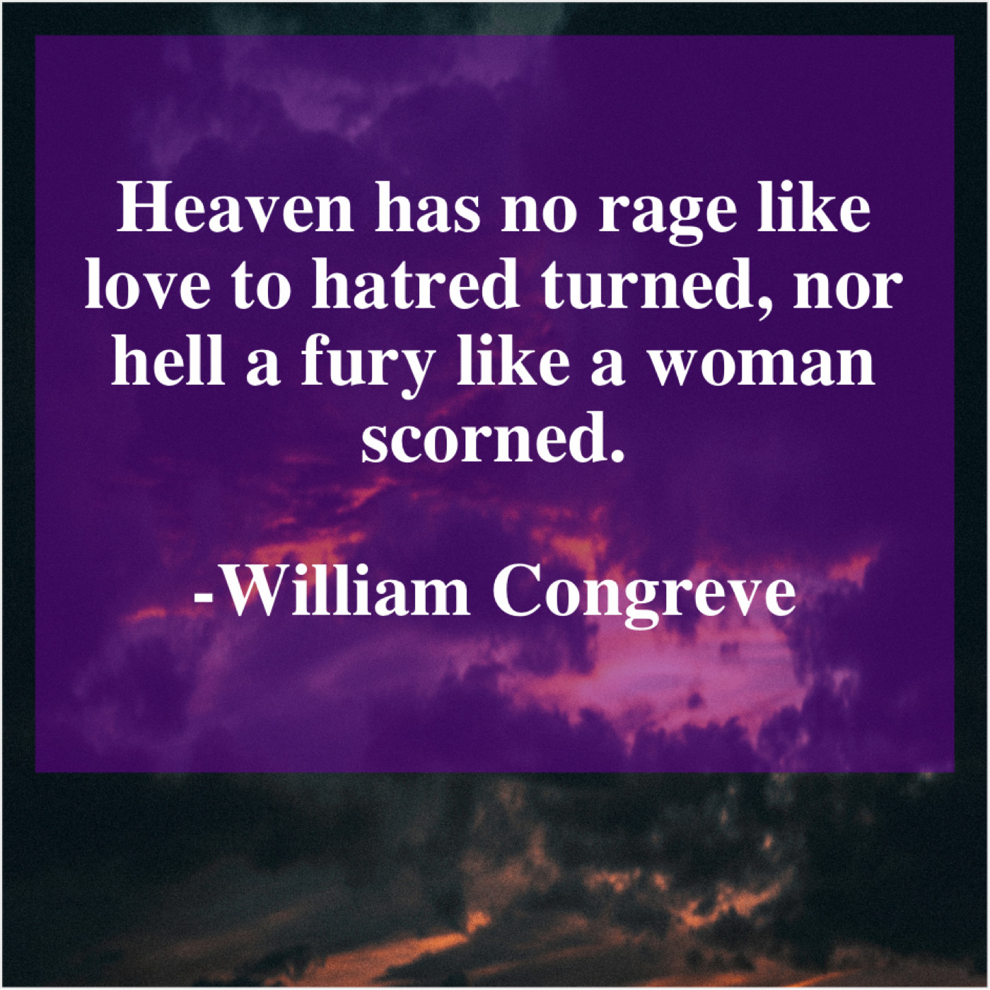 William Congreve William Congreve – Heaven has no rage like… April 4, 2019 admin “Heaven has no rage like love to hatred turned, nor hell a fury like a woman scorned.”-William Congreve
