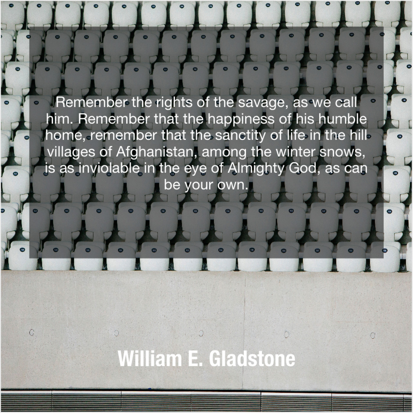 “Remember the rights of the savage, as we call him. Remember that the happiness of his humble home, remember that the sanctity of life in the hill villages of Afghanistan, among the winter snows, is as inviolable in the eye of Almighty God, as can be your own.”