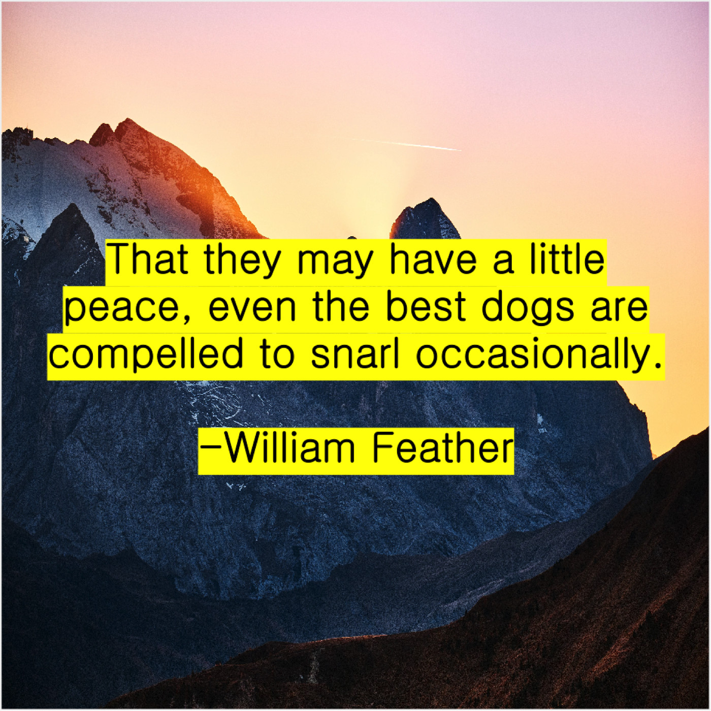 William Feather William Feather – That they may have a… July 23, 2019 admin “That they may have a little peace, even the best dogs are compelled to snarl occasionally.”-William Feather
