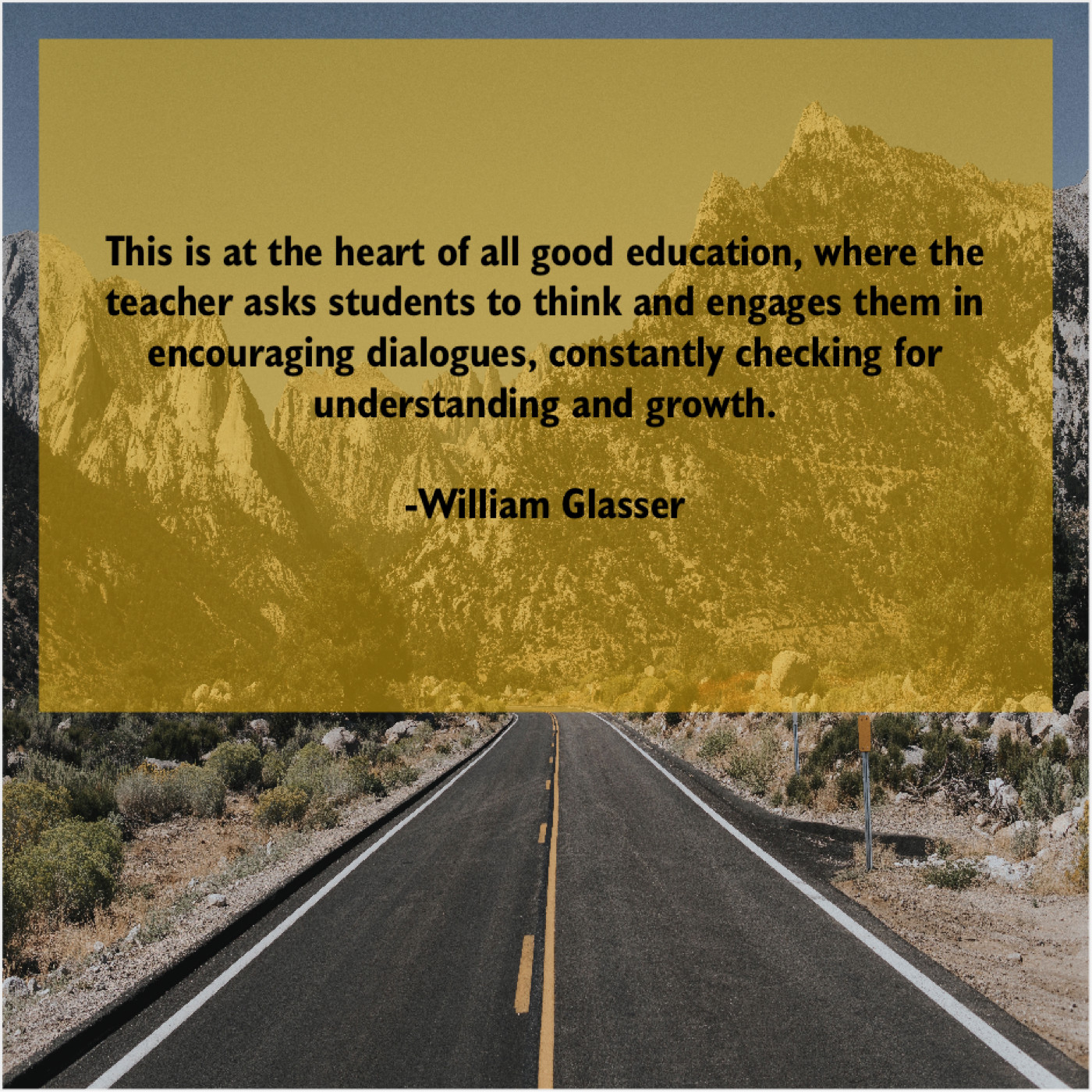 William Glasser William Glasser – This is at the heart… April 21, 2019 admin “This is at the heart of all good education, where the teacher asks students to think and engages them in encouraging dialogues, constantly checking for understanding and growth.”-William Glasser