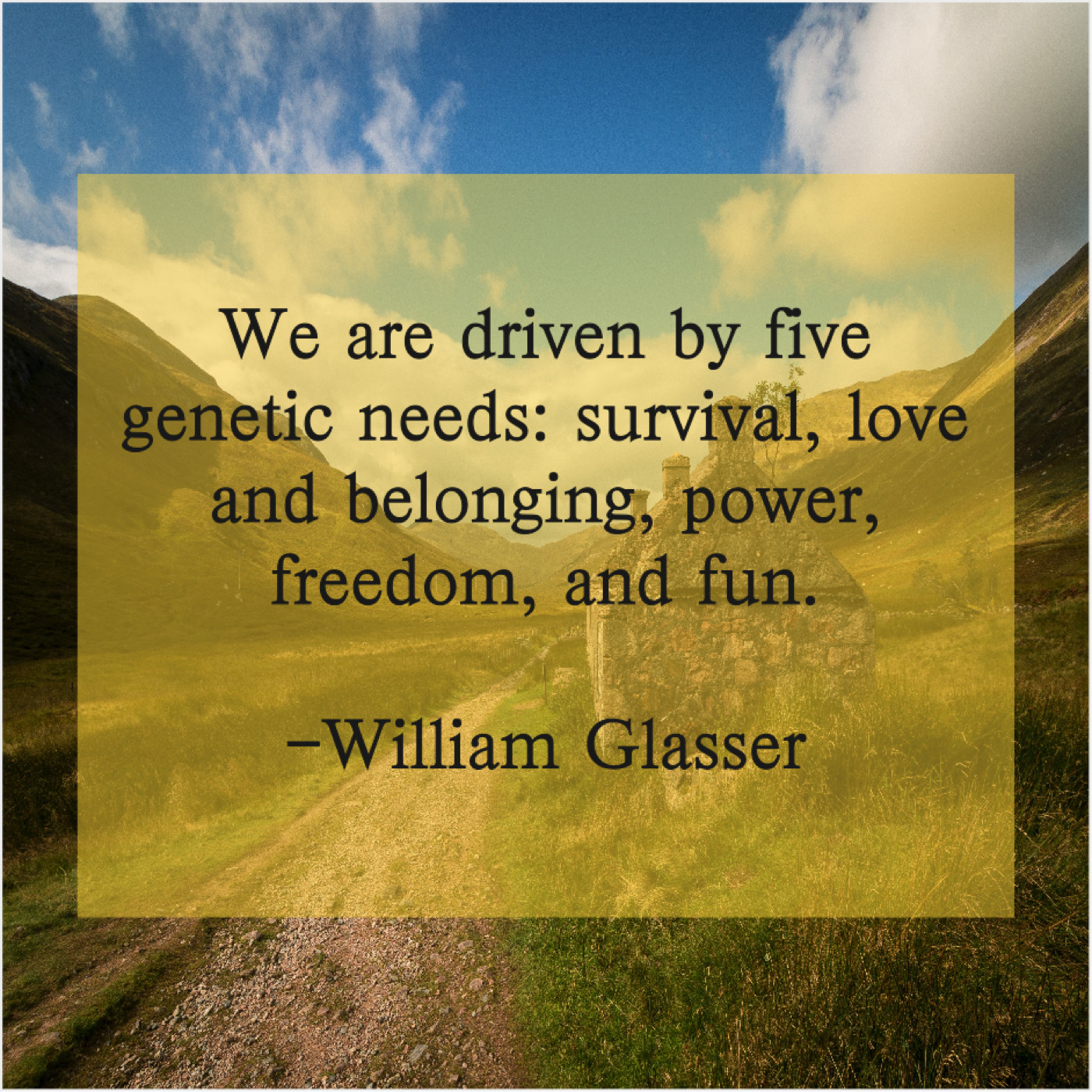 William Glasser William Glasser – We are driven by five… January 15, 2019 admin “We are driven by five genetic needs: survival, love and belonging, power, freedom, and fun.”-William Glasser