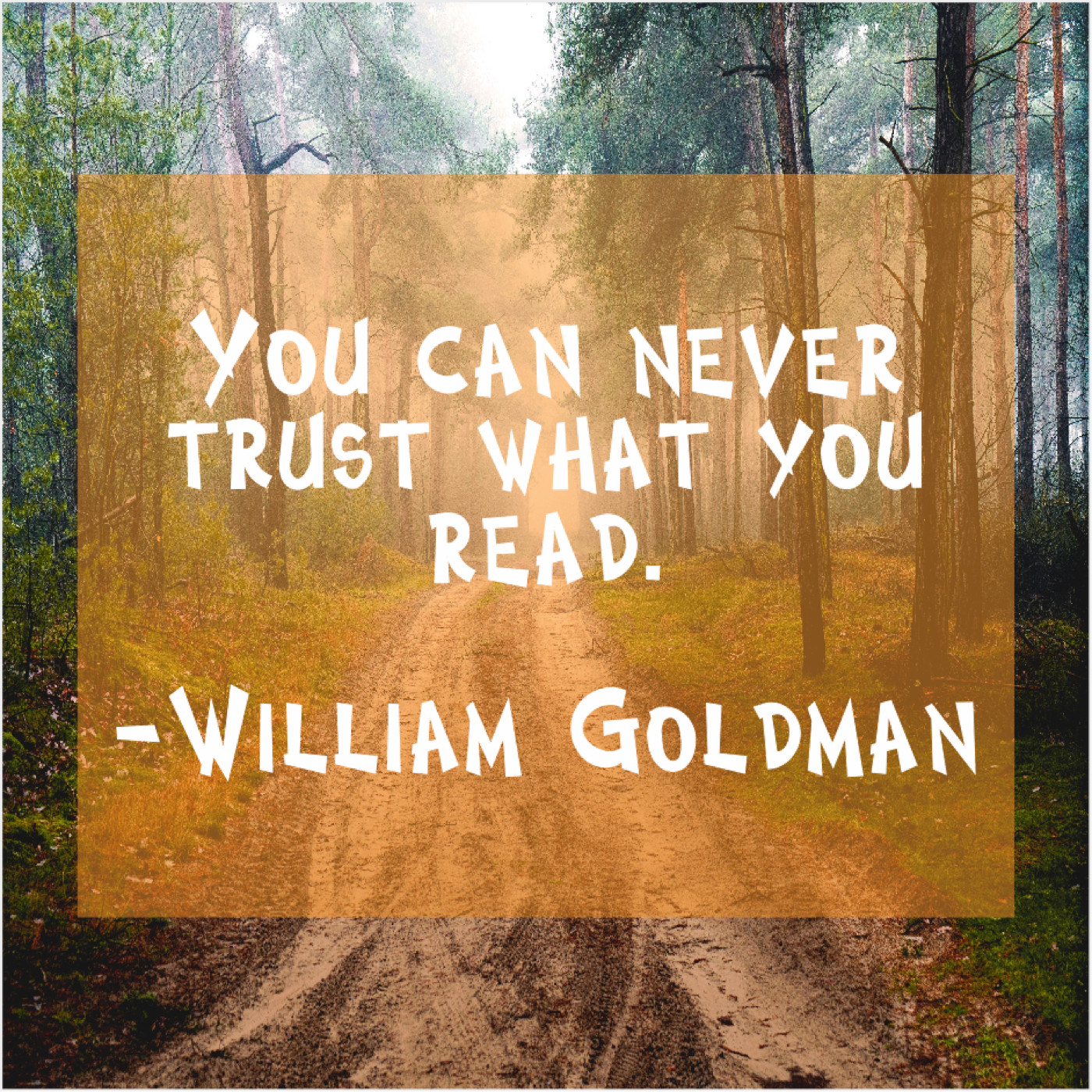 William Goldman William Goldman – You can never trust what… November 26, 2018 admin “You can never trust what you read.”-William Goldman