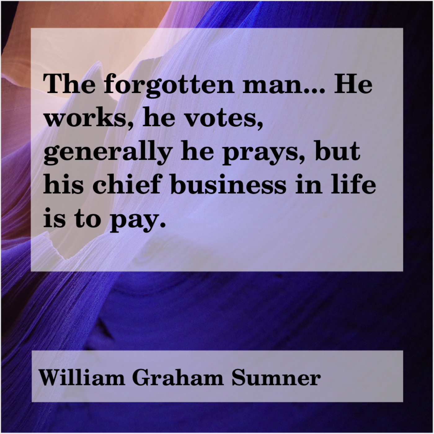 William Graham Sumner William Graham Sumner – The forgotten man… He works… August 5, 2019 admin “The forgotten man… He works, he votes, generally he prays, but his chief business in life is to pay.”-William Graham Sumner