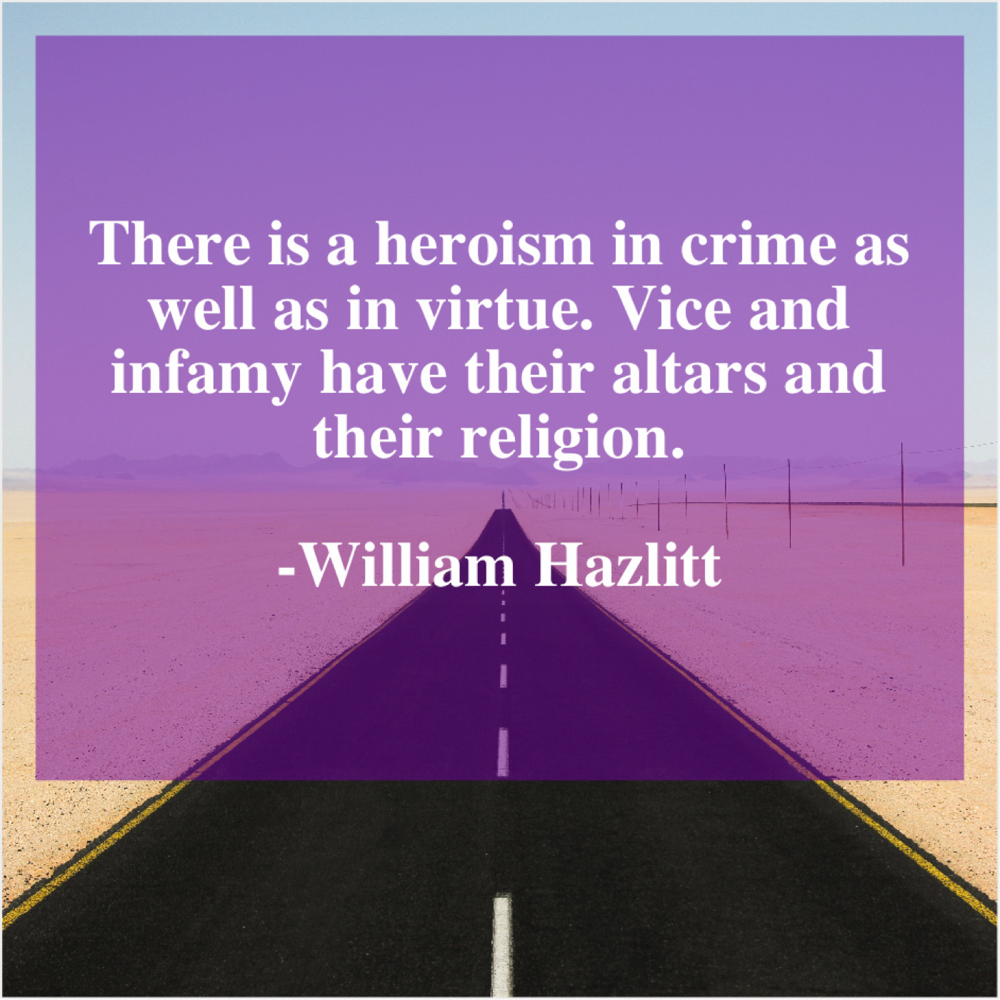 William Hazlitt William Hazlitt – There is a heroism in… February 5, 2019 admin “There is a heroism in crime as well as in virtue. Vice and infamy have their altars and their religion.”-William Hazlitt