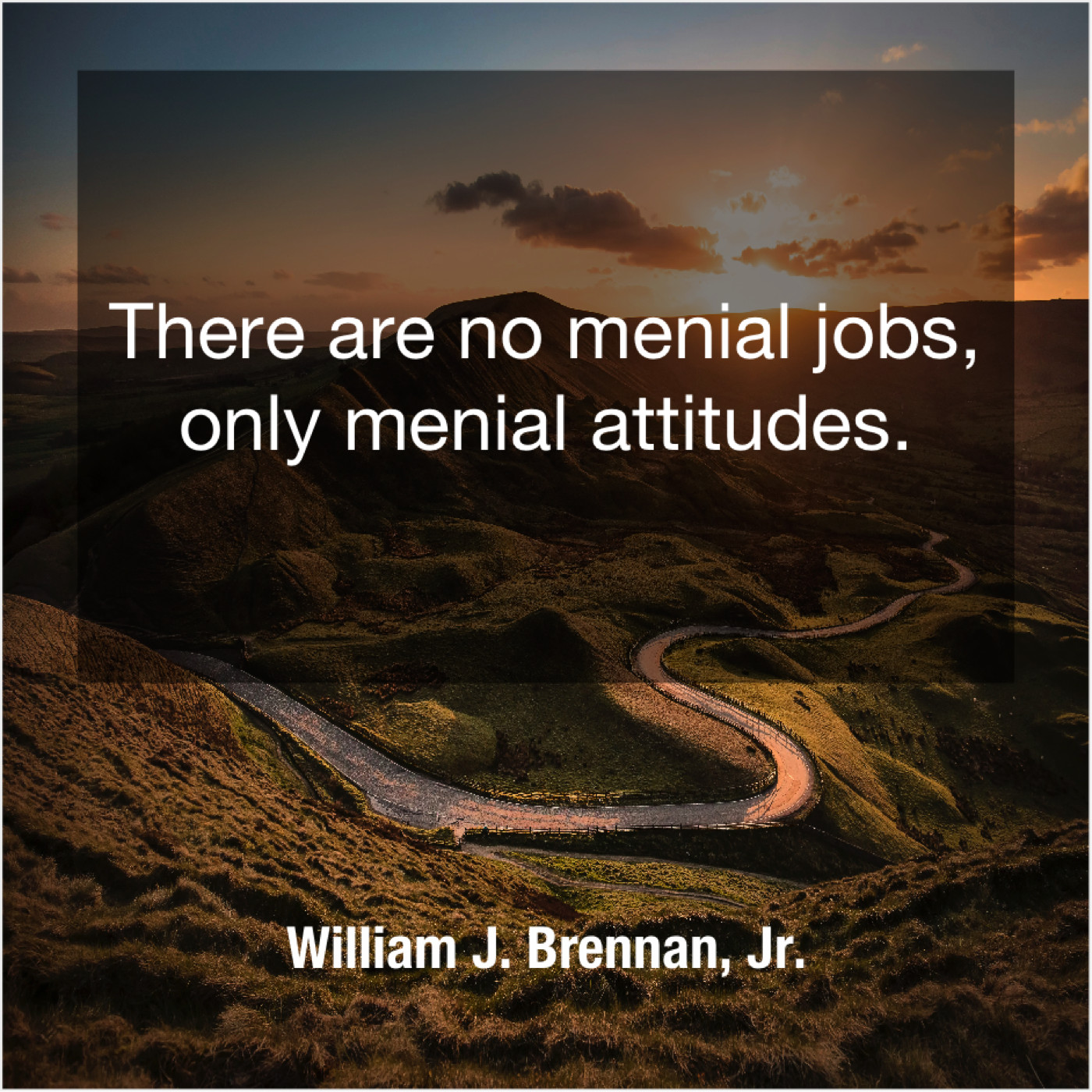 William J. Brennan, Jr. William J. Brennan, Jr. – There are no menial jobs… May 21, 2019 admin “There are no menial jobs, only menial attitudes.”-William J. Brennan, Jr.
