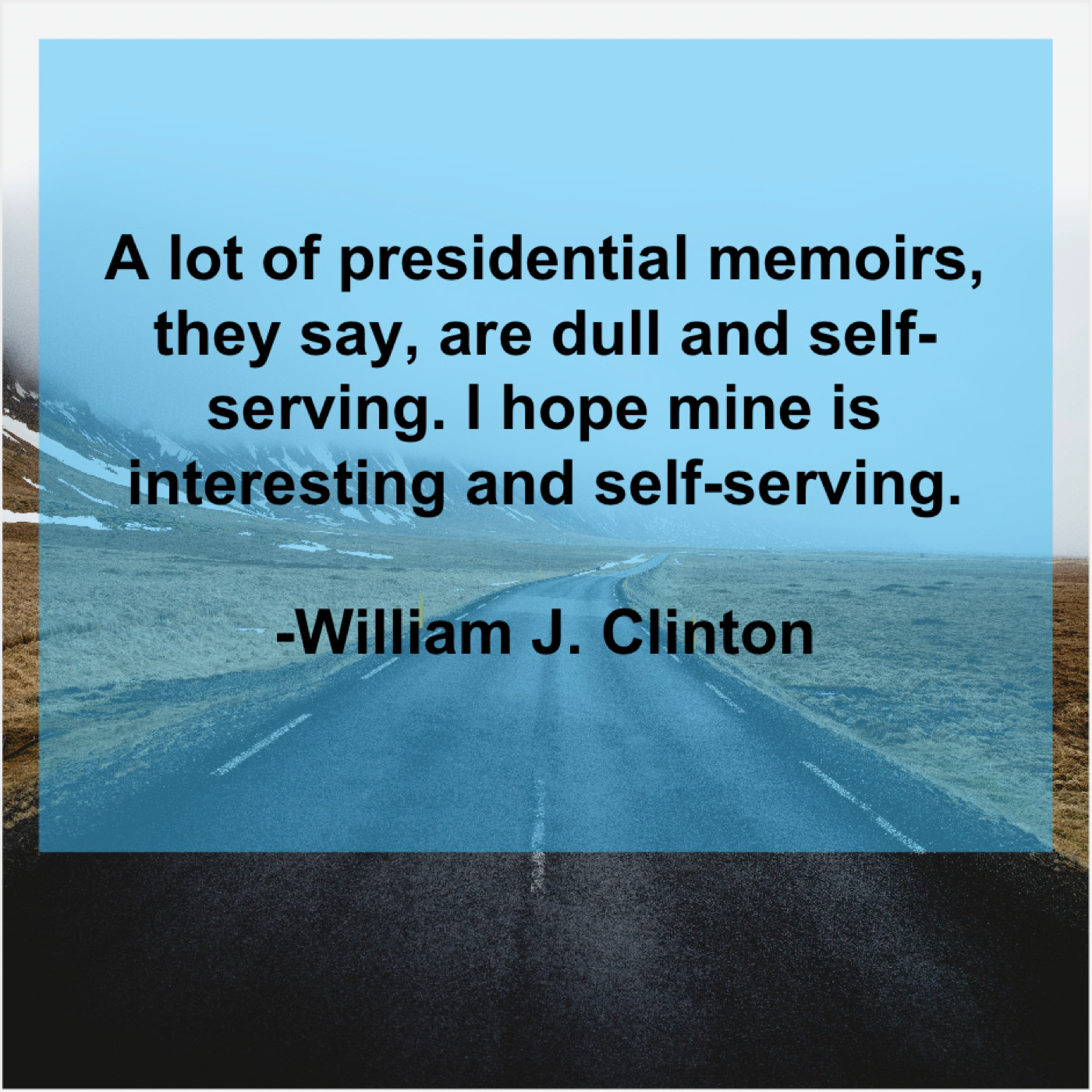 William J. Clinton William J. Clinton – A lot of presidential memoirs… February 12, 2019 admin “A lot of presidential memoirs, they say, are dull and self-serving. I hope mine is interesting and self-serving.”-William J. Clinton