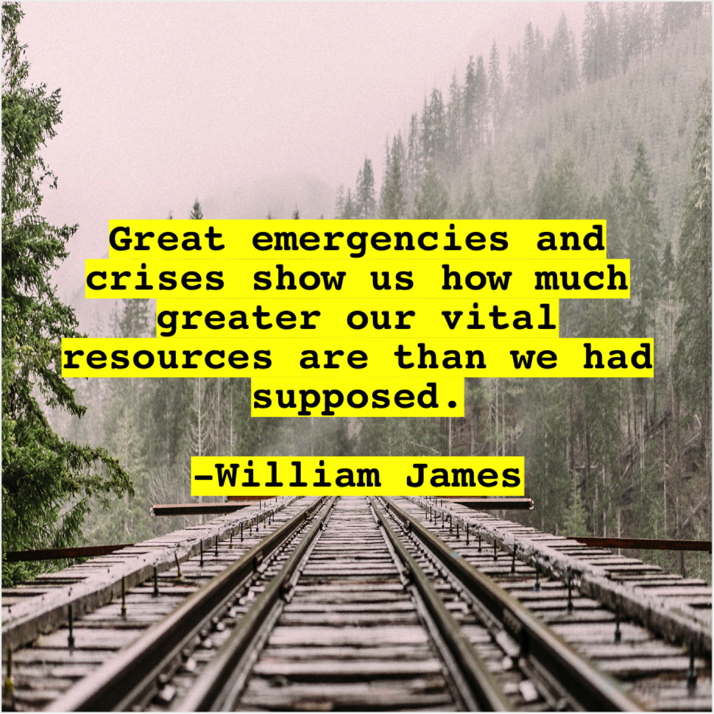 William James William James – Great emergencies and crises show… April 5, 2019 admin “Great emergencies and crises show us how much greater our vital resources are than we had supposed.”-William James