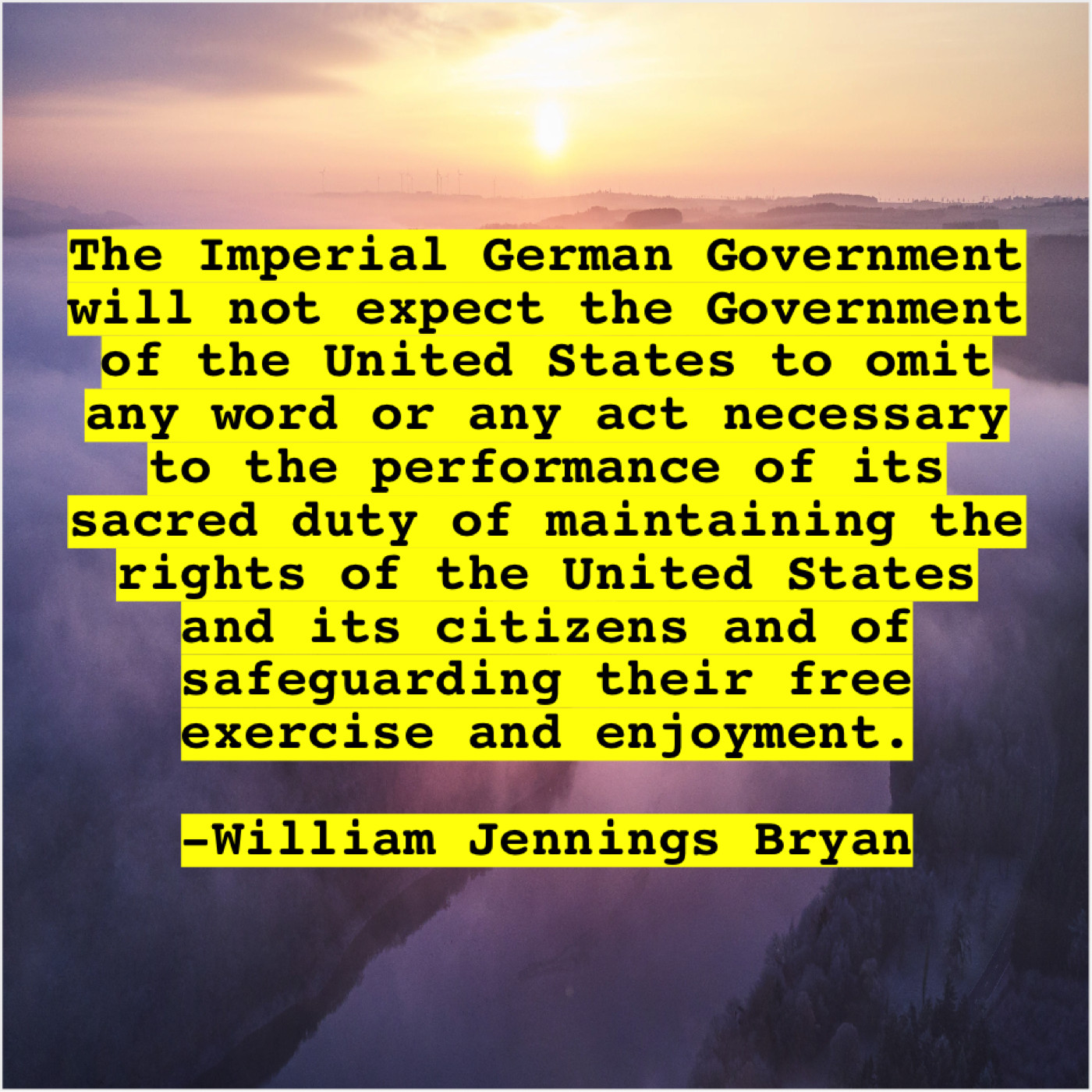 “The Imperial German Government will not expect the Government of the United States to omit any word or any act necessary to the performance of its sacred duty of maintaining the rights of the United States and its citizens and of safeguarding their free exercise and enjoyment.”