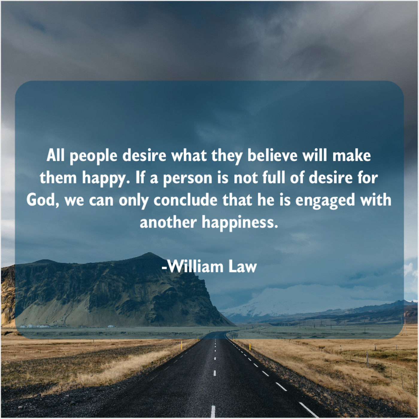 William Law William Law – All people desire what they… December 15, 2018 admin “All people desire what they believe will make them happy. If a person is not full of desire for God, we can only conclude that he is engaged with another happiness.”-William Law