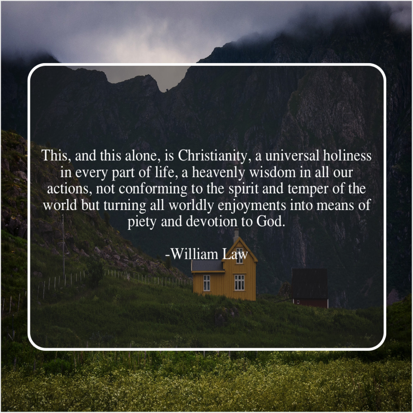 “This, and this alone, is Christianity, a universal holiness in every part of life, a heavenly wisdom in all our actions, not conforming to the spirit and temper of the world but turning all worldly enjoyments into means of piety and devotion to God.”