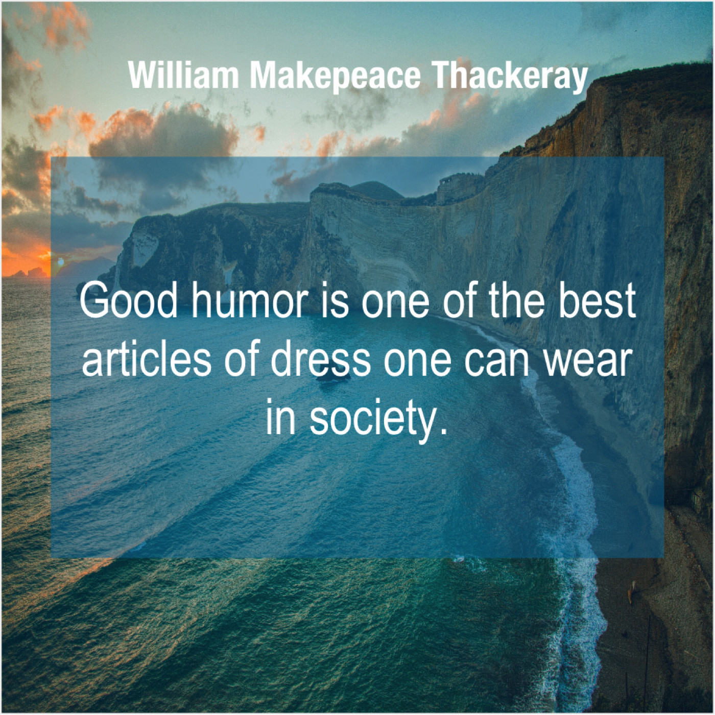 William Makepeace Thackeray William Makepeace Thackeray – Good humor is one of… May 31, 2019 admin “Good humor is one of the best articles of dress one can wear in society.”-William Makepeace Thackeray