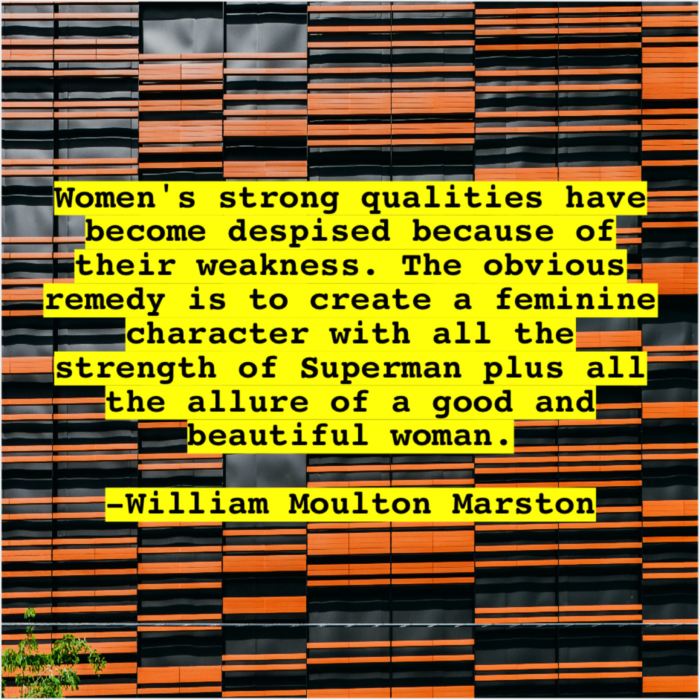 William Moulton Marston William Moulton Marston – Women’s strong qualities have become… February 4, 2019 admin “Women’s strong qualities have become despised because of their weakness. The obvious remedy is to create a feminine character with all the strength of Superman plus all the allure of a good and beautiful woman.”-William Moulton Marston