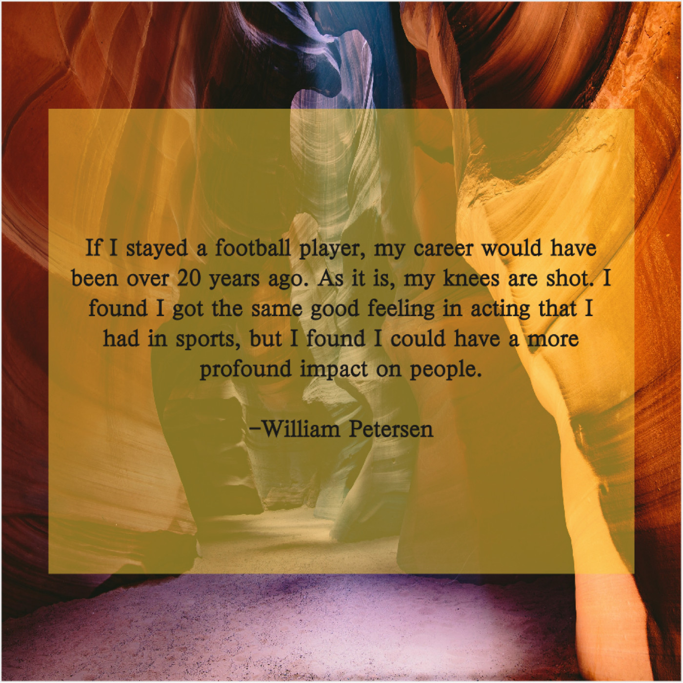 “If I stayed a football player, my career would have been over 20 years ago. As it is, my knees are shot. I found I got the same good feeling in acting that I had in sports, but I found I could have a more profound impact on people.”