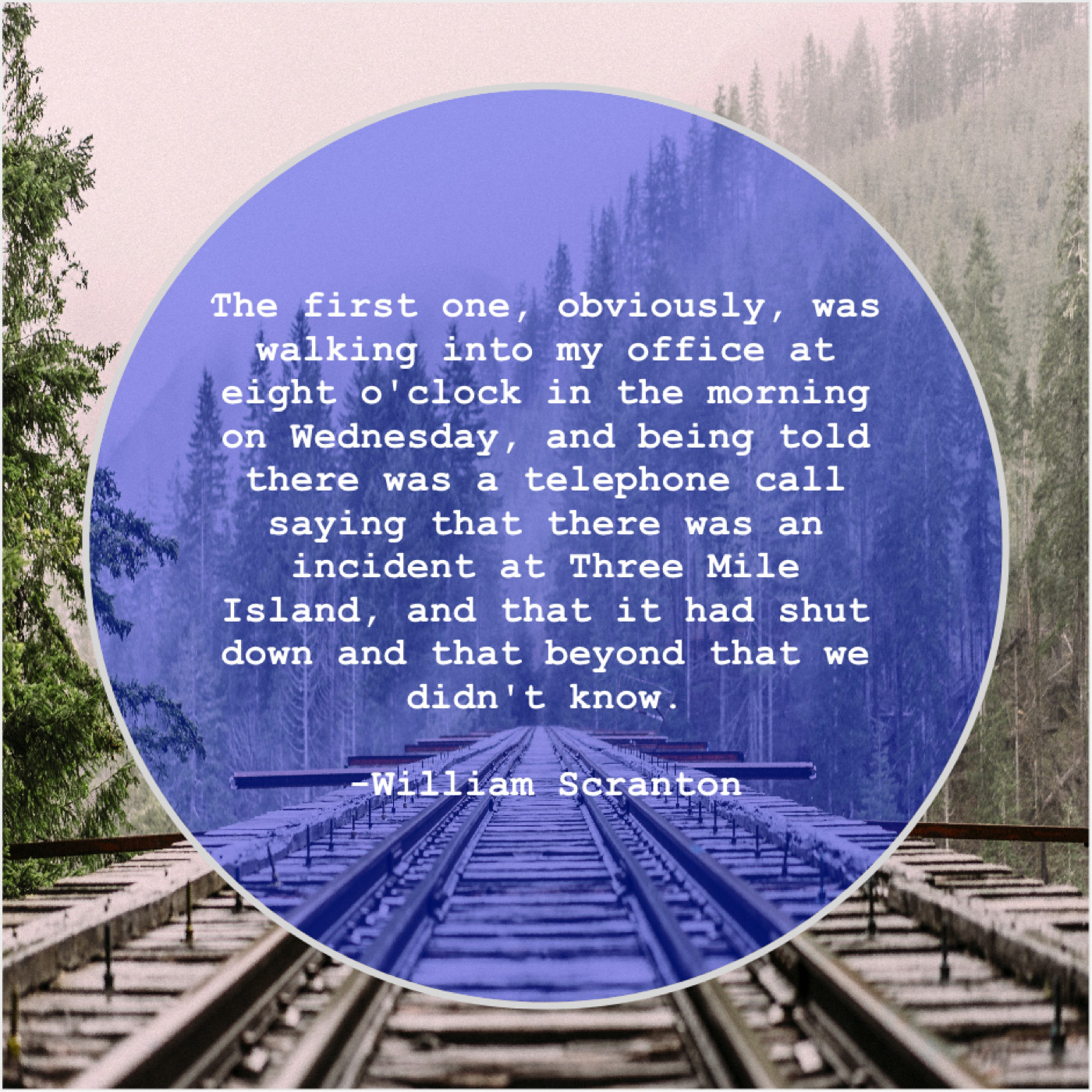 “The first one, obviously, was walking into my office at eight o’clock in the morning on Wednesday, and being told there was a telephone call saying that there was an incident at Three Mile Island, and that it had shut down and that beyond that we didn’t know.”