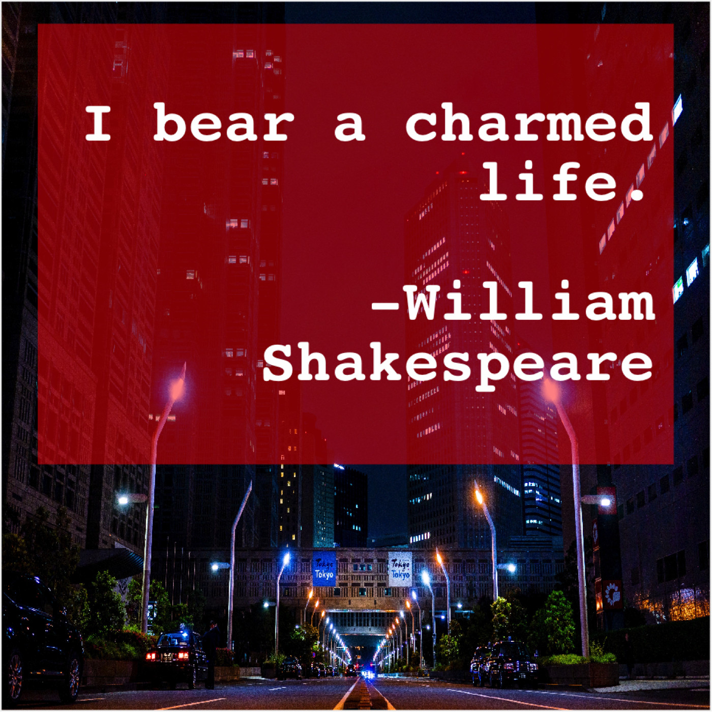 William Shakespeare William Shakespeare – I bear a charmed life… August 11, 2019 admin “I bear a charmed life.”-William Shakespeare