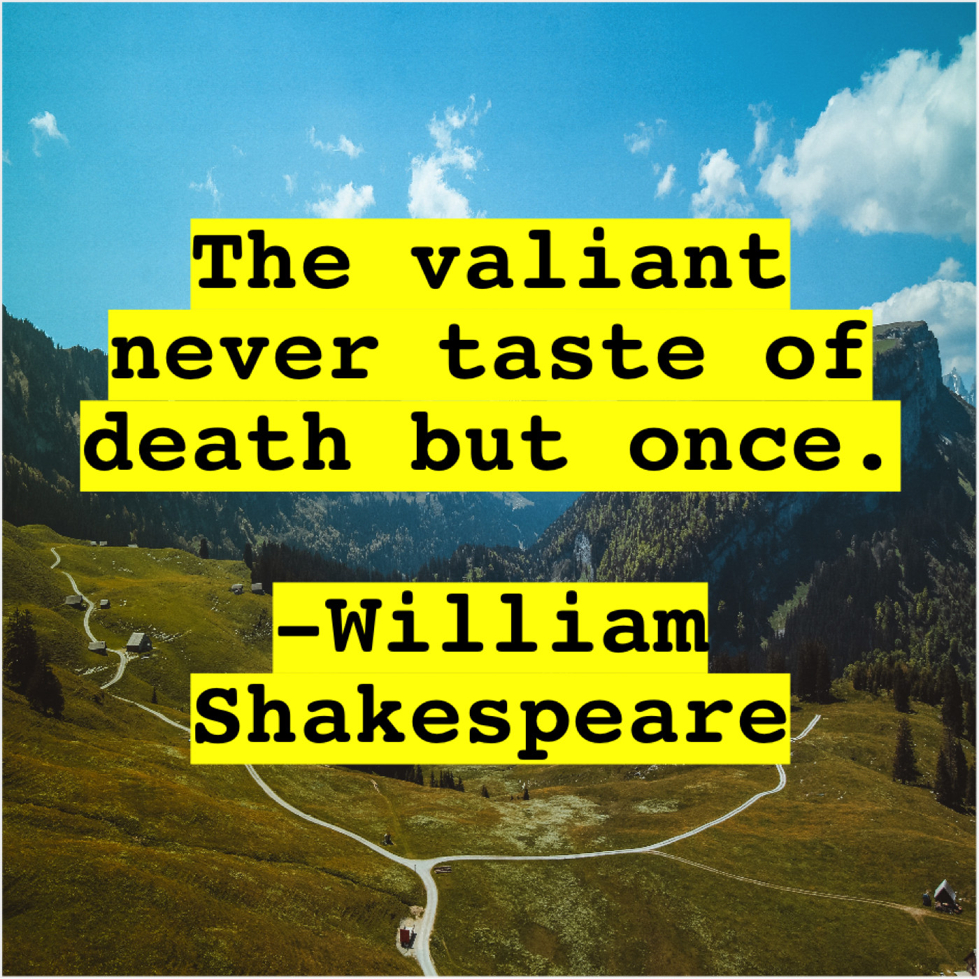 William Shakespeare William Shakespeare – The valiant never taste of… March 2, 2019 admin “The valiant never taste of death but once.”-William Shakespeare