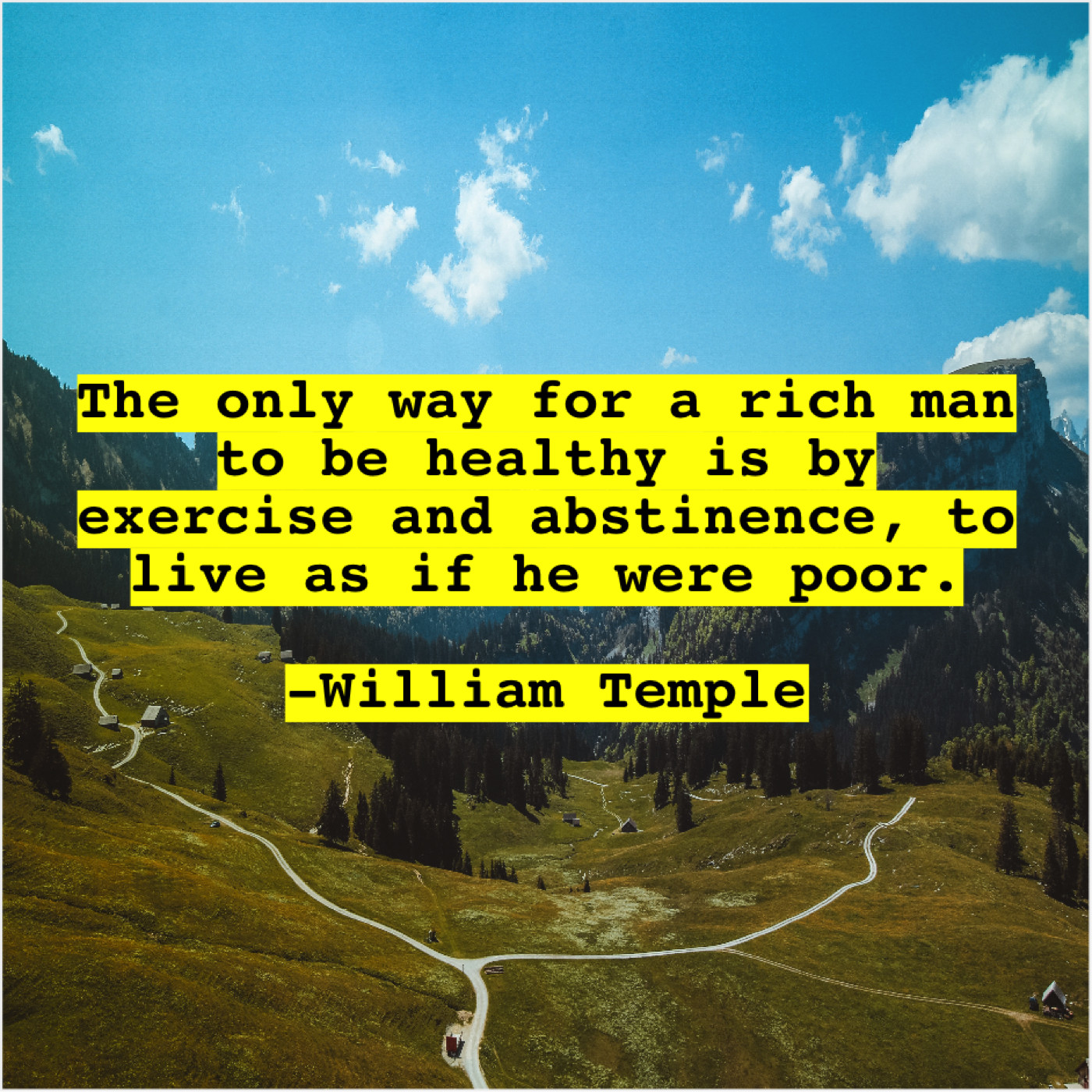 William Temple William Temple – The only way for a… April 29, 2019 admin “The only way for a rich man to be healthy is by exercise and abstinence, to live as if he were poor.”-William Temple
