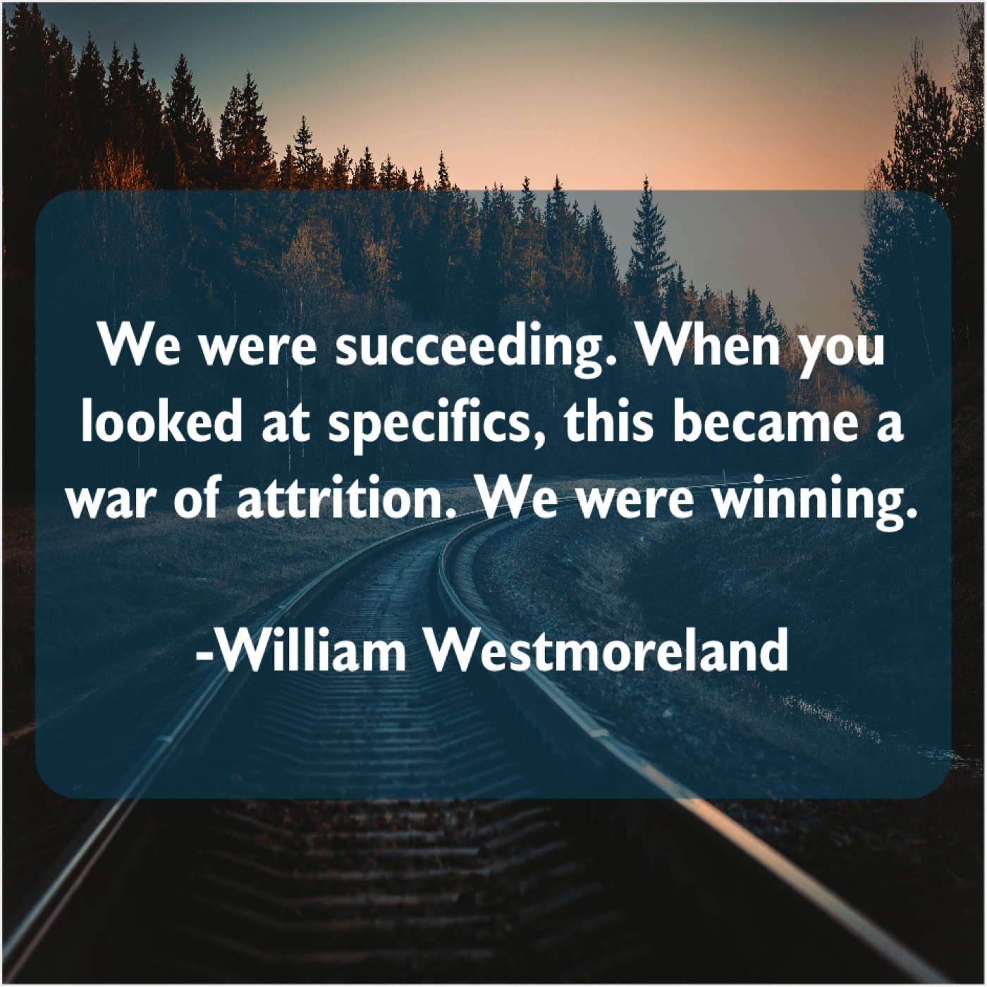 William Westmoreland William Westmoreland – We were succeeding. When you… August 4, 2019 admin “We were succeeding. When you looked at specifics, this became a war of attrition. We were winning.”-William Westmoreland