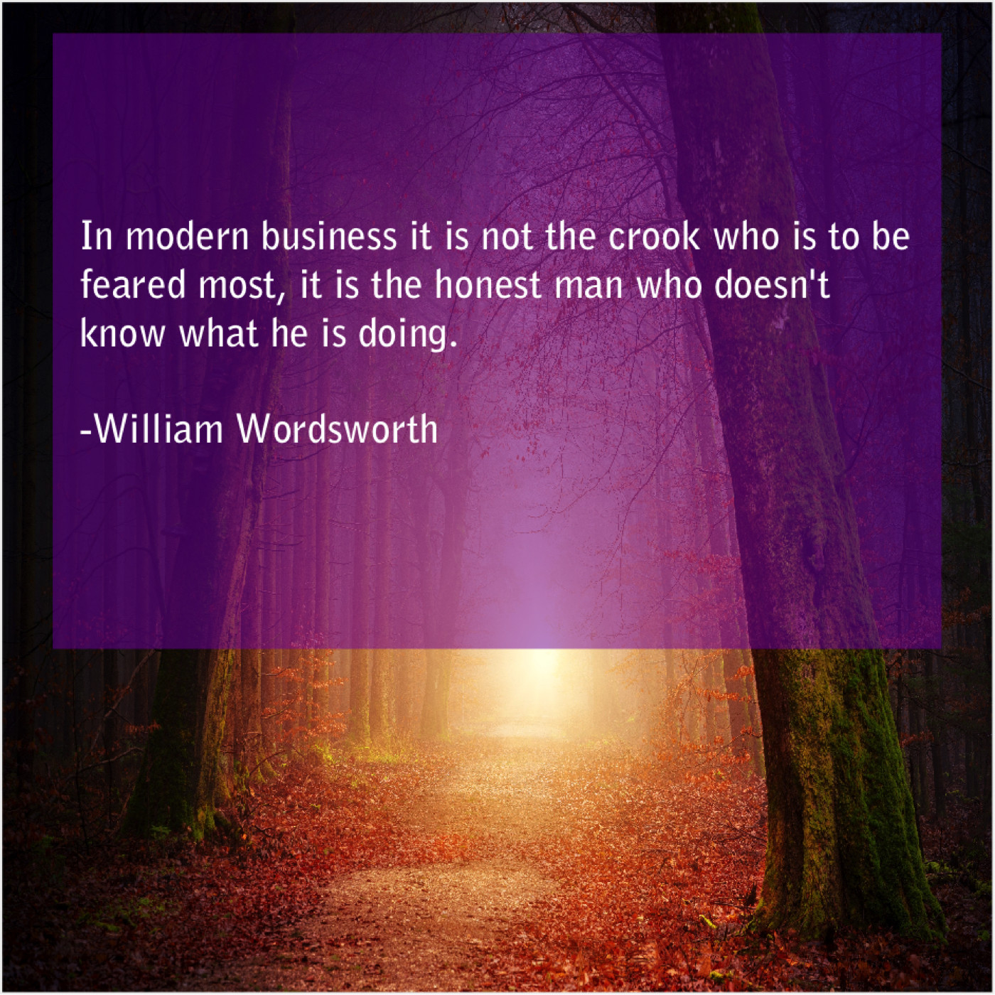 William Wordsworth William Wordsworth – In modern business it is… March 24, 2019 admin “In modern business it is not the crook who is to be feared most, it is the honest man who doesn’t know what he is doing.”-William Wordsworth