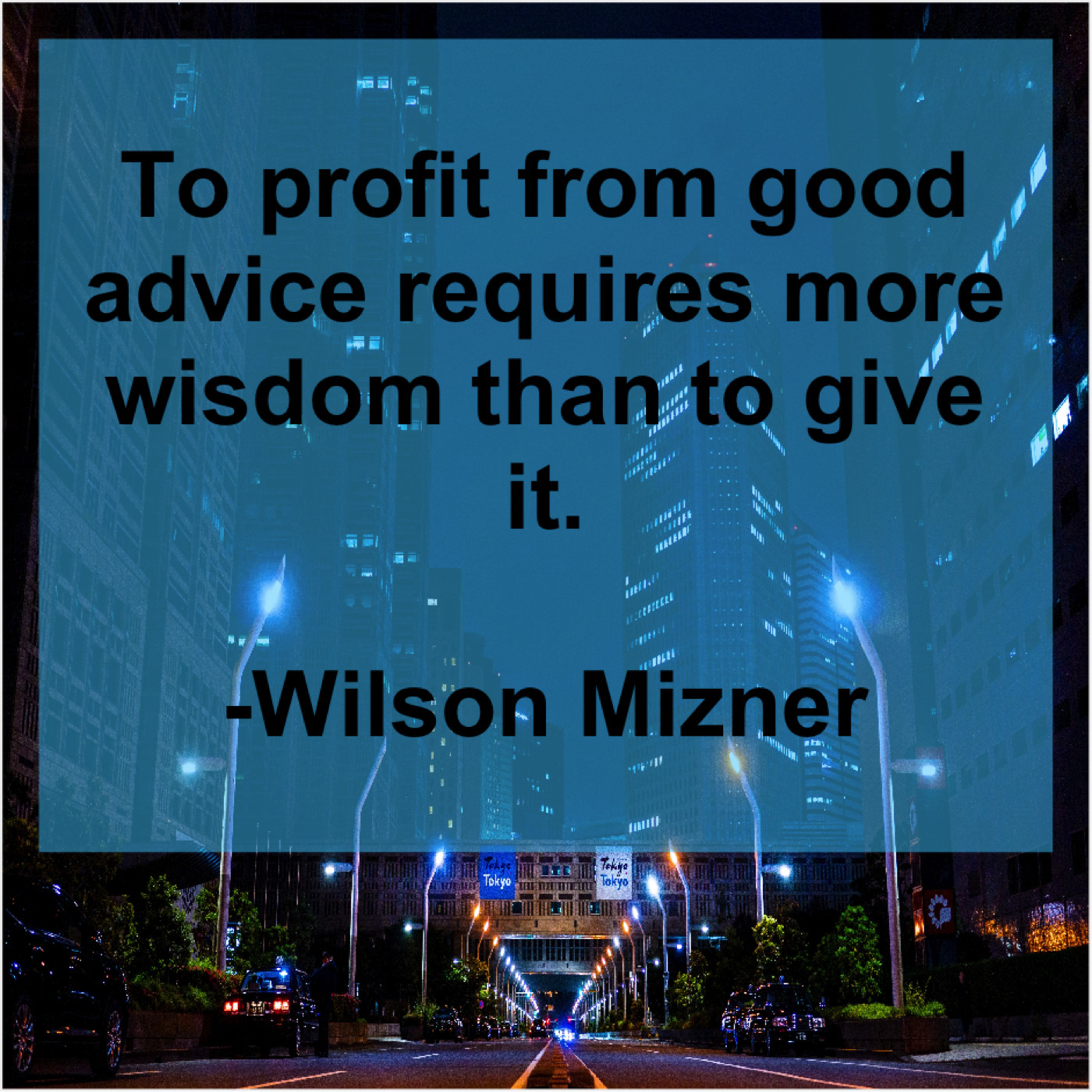 Wilson Mizner Wilson Mizner – To profit from good advice… August 27, 2019 admin “To profit from good advice requires more wisdom than to give it.”-Wilson Mizner
