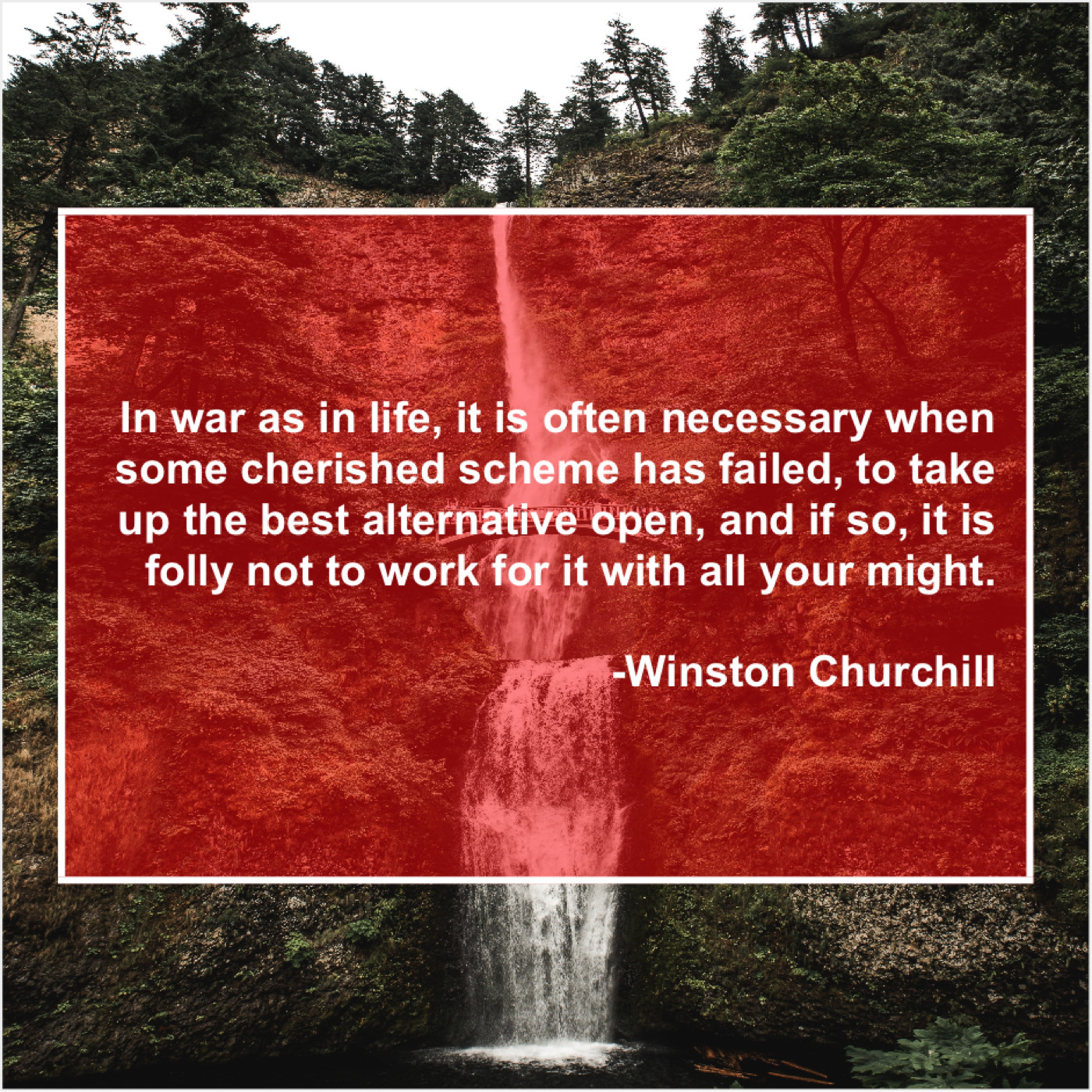 Winston Churchill Winston Churchill – In war as in life… September 23, 2019 admin “In war as in life, it is often necessary when some cherished scheme has failed, to take up the best alternative open, and if so, it is folly not to work for it with all your might.”-Winston Churchill
