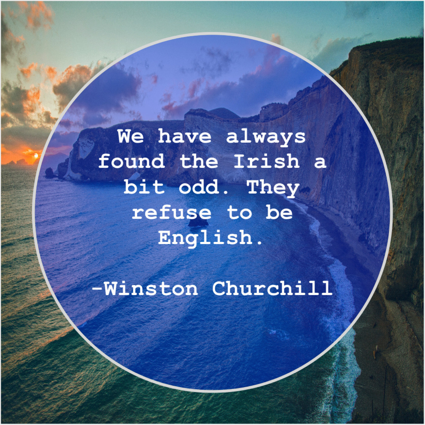 Winston Churchill Winston Churchill – We have always found the… October 5, 2019 admin “We have always found the Irish a bit odd. They refuse to be English.”-Winston Churchill