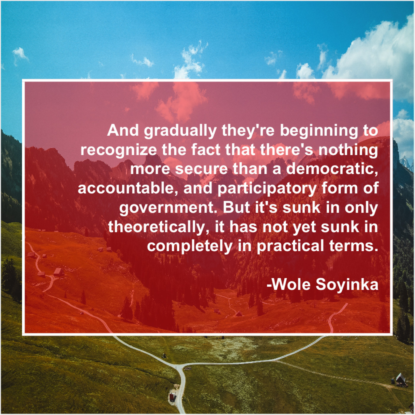 “And gradually they’re beginning to recognize the fact that there’s nothing more secure than a democratic, accountable, and participatory form of government. But it’s sunk in only theoretically, it has not yet sunk in completely in practical terms.”